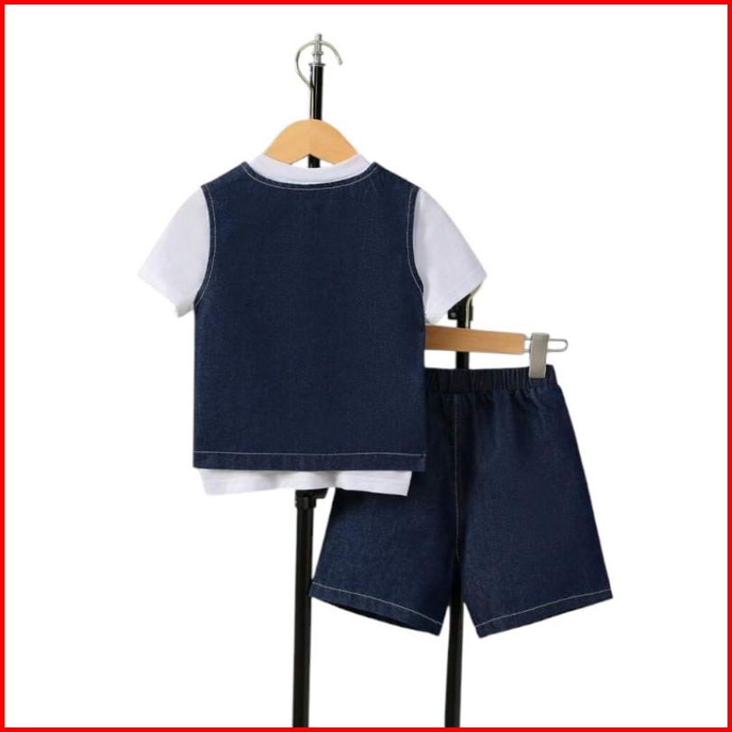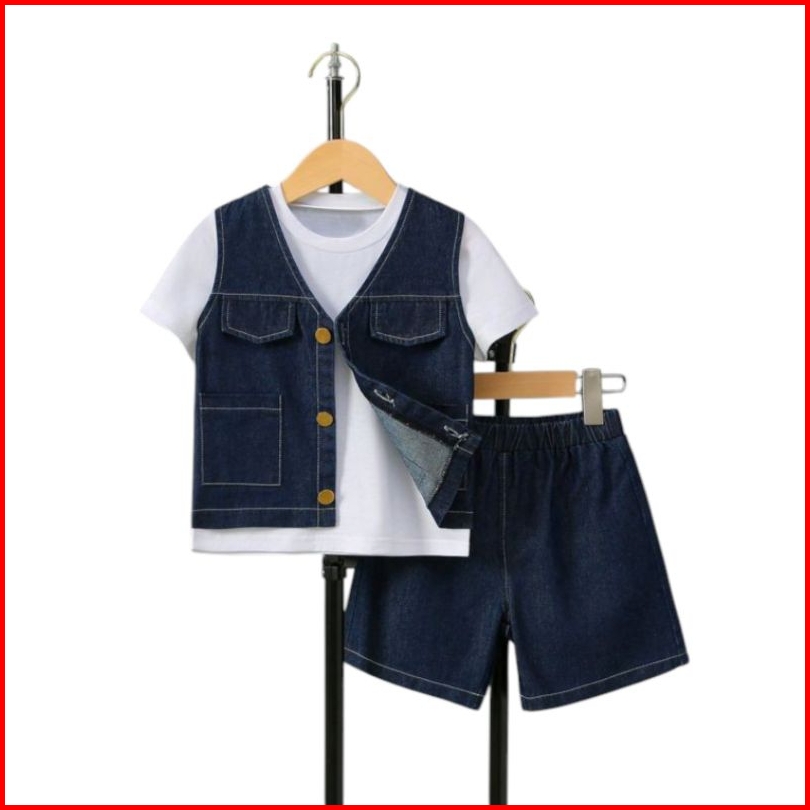 Setelan Anak Laki-laki 3in1 Model Set Kemeja Rompi St08 1 - 5 Tahun