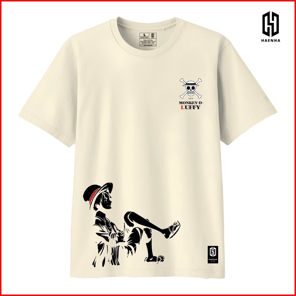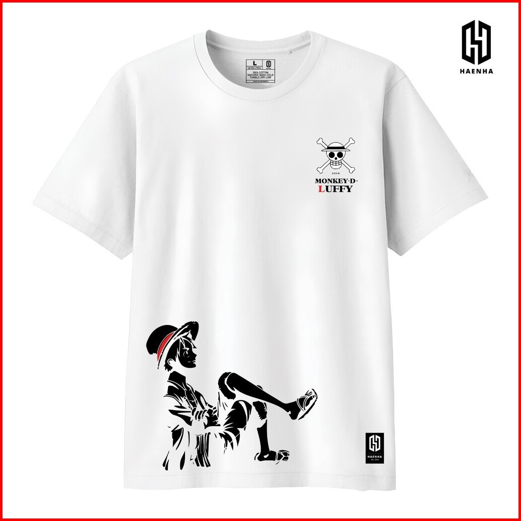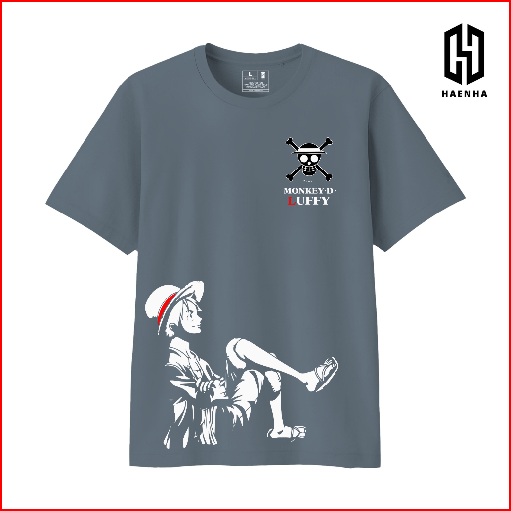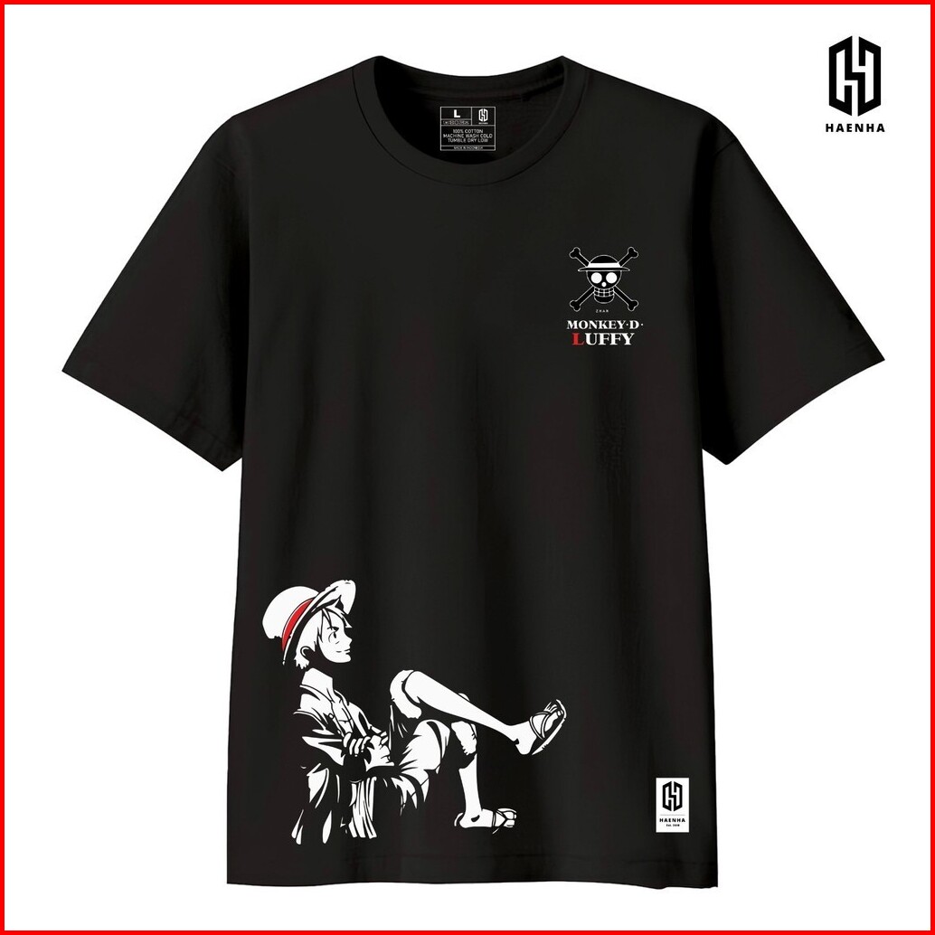 Haenha One Piece Luffy Relax Baju Kaos Distro - T Shirt Sablon Unisex