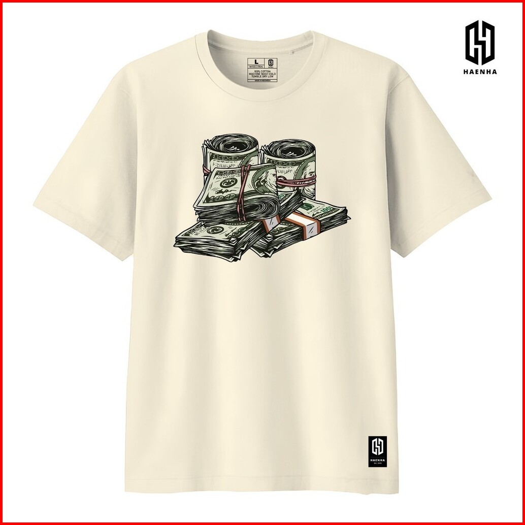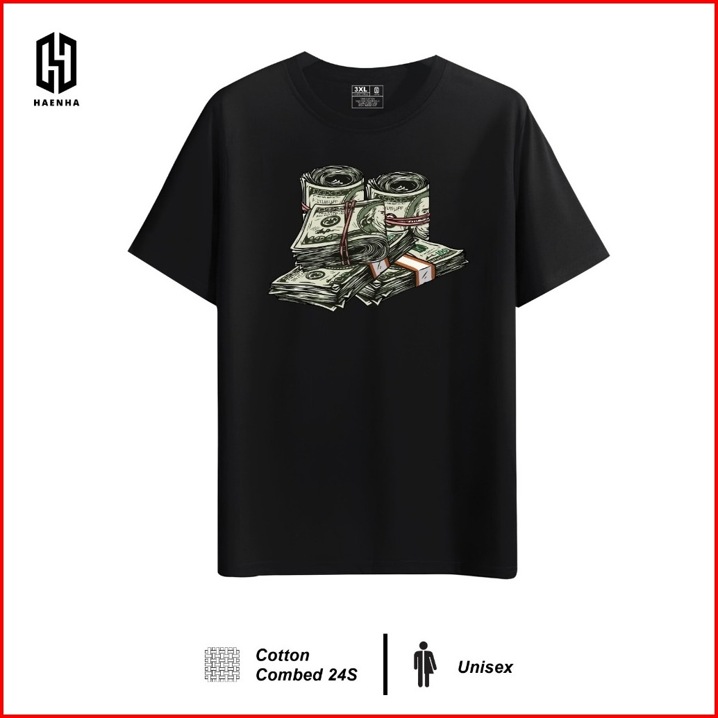 Haenha Money Baju Kaos Distro Tshirt Sablon Pria Wanita Cotton Combed 24s