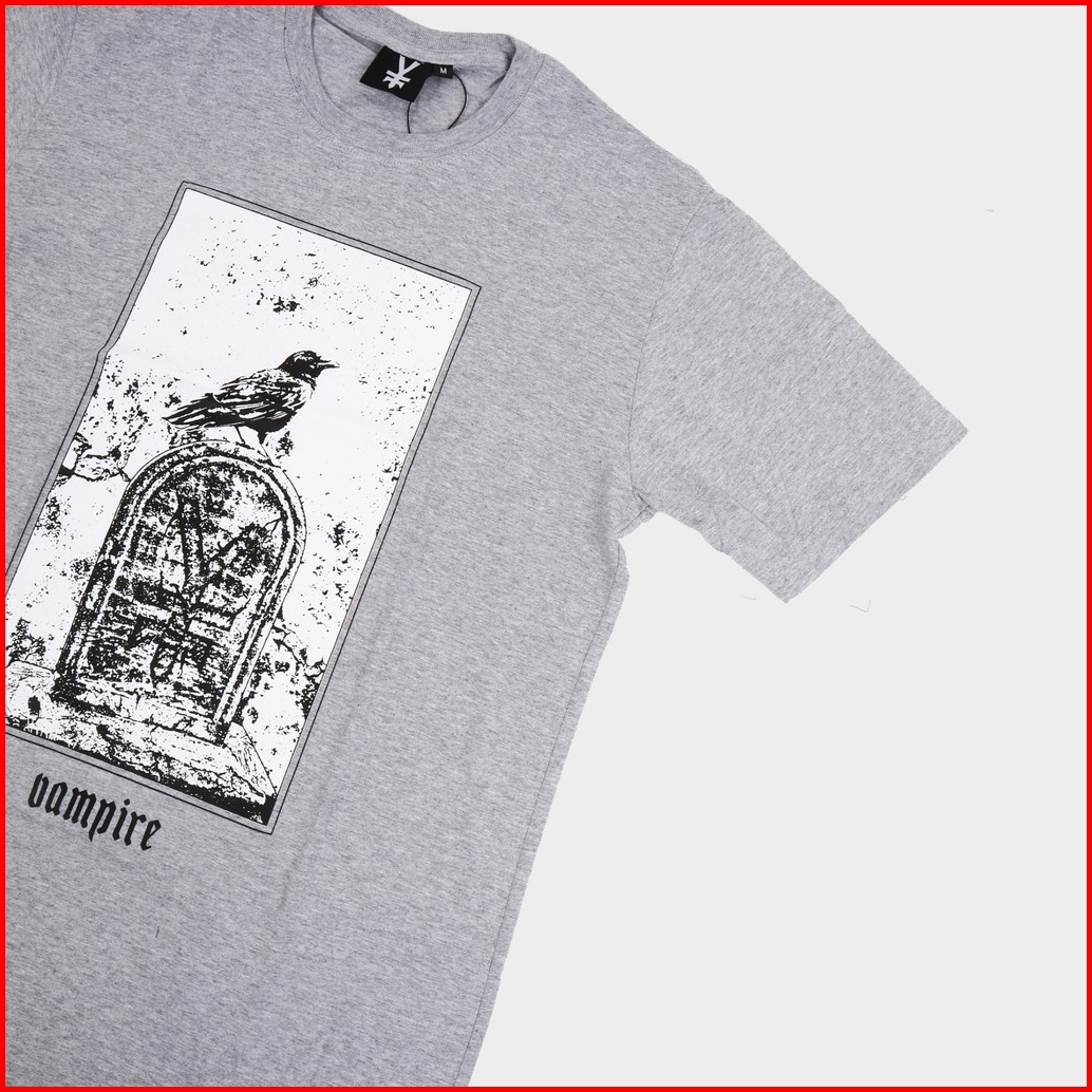 Vampire Kingdom Kaos Pria Tshirt Lengan Pendek Distro Cowok Metal Abu Muda Dead Crow Misty