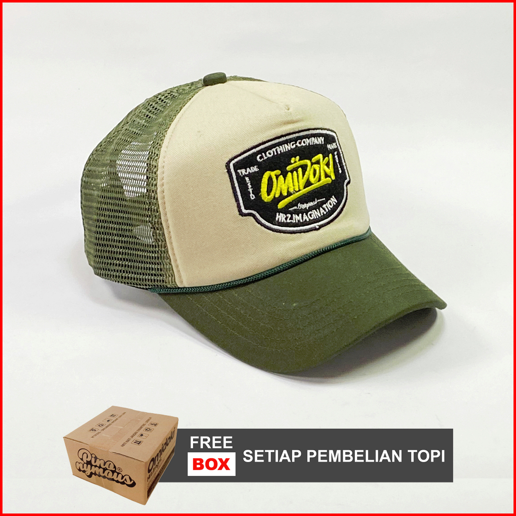 Topi Jaring Pria Distro Original Trucker Hat Omidoki Army Cream