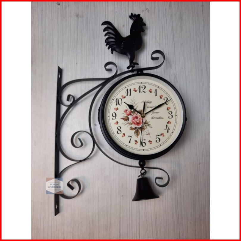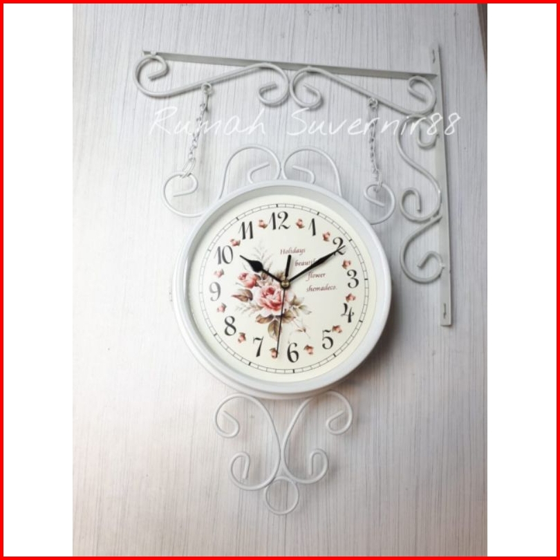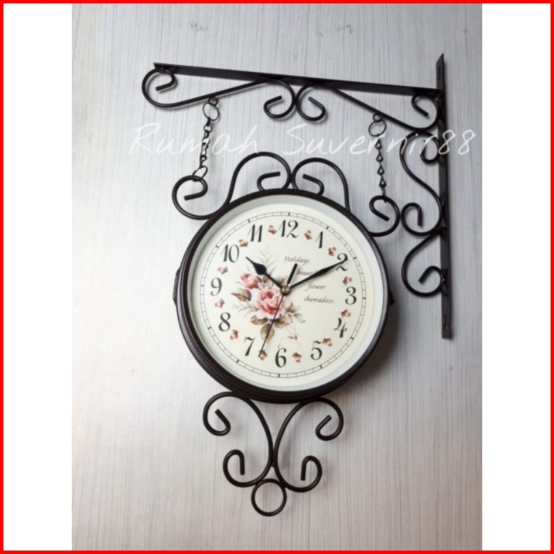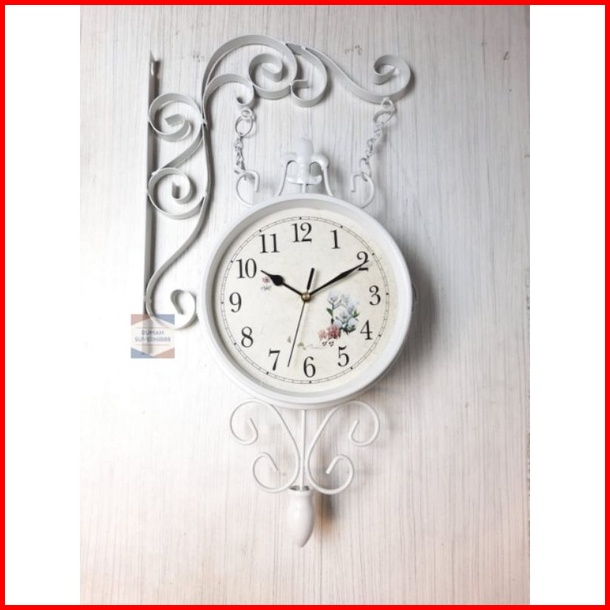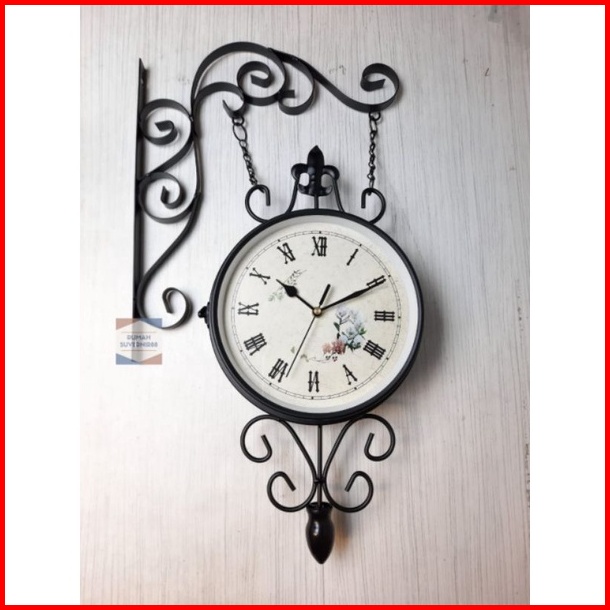 Jam Gantung 2 Sisi Garden Hiasan Dekorasi Cafe Vintage Shabby Wall Clock Double Side