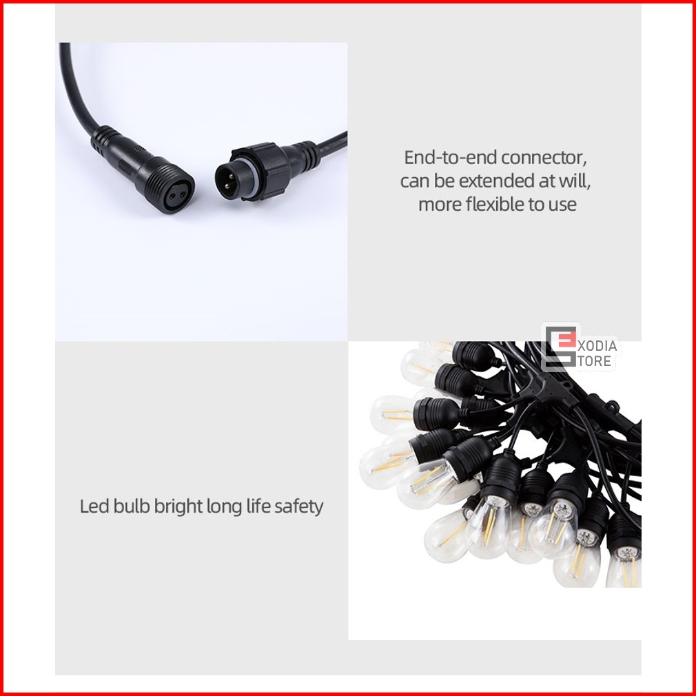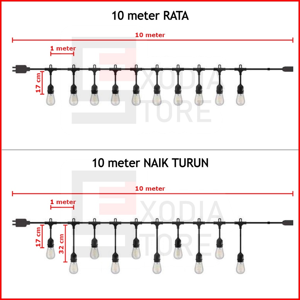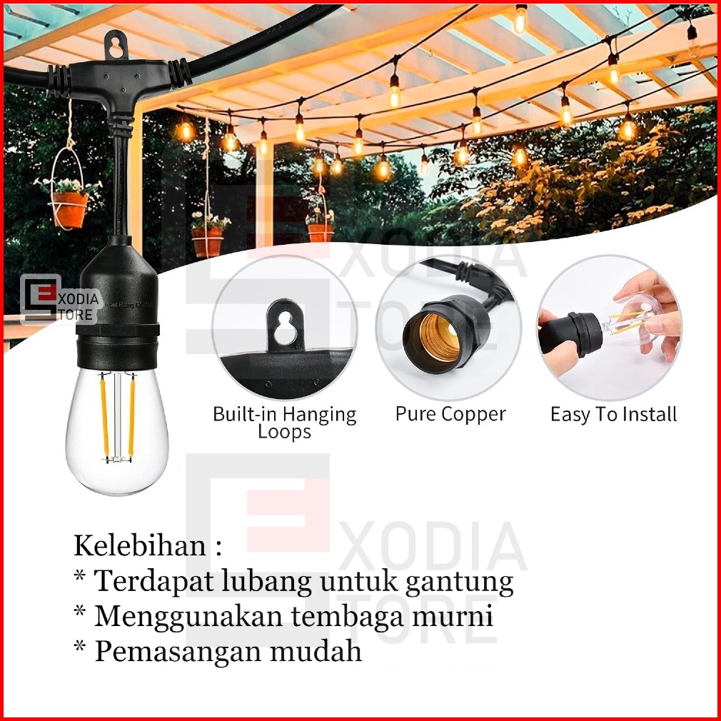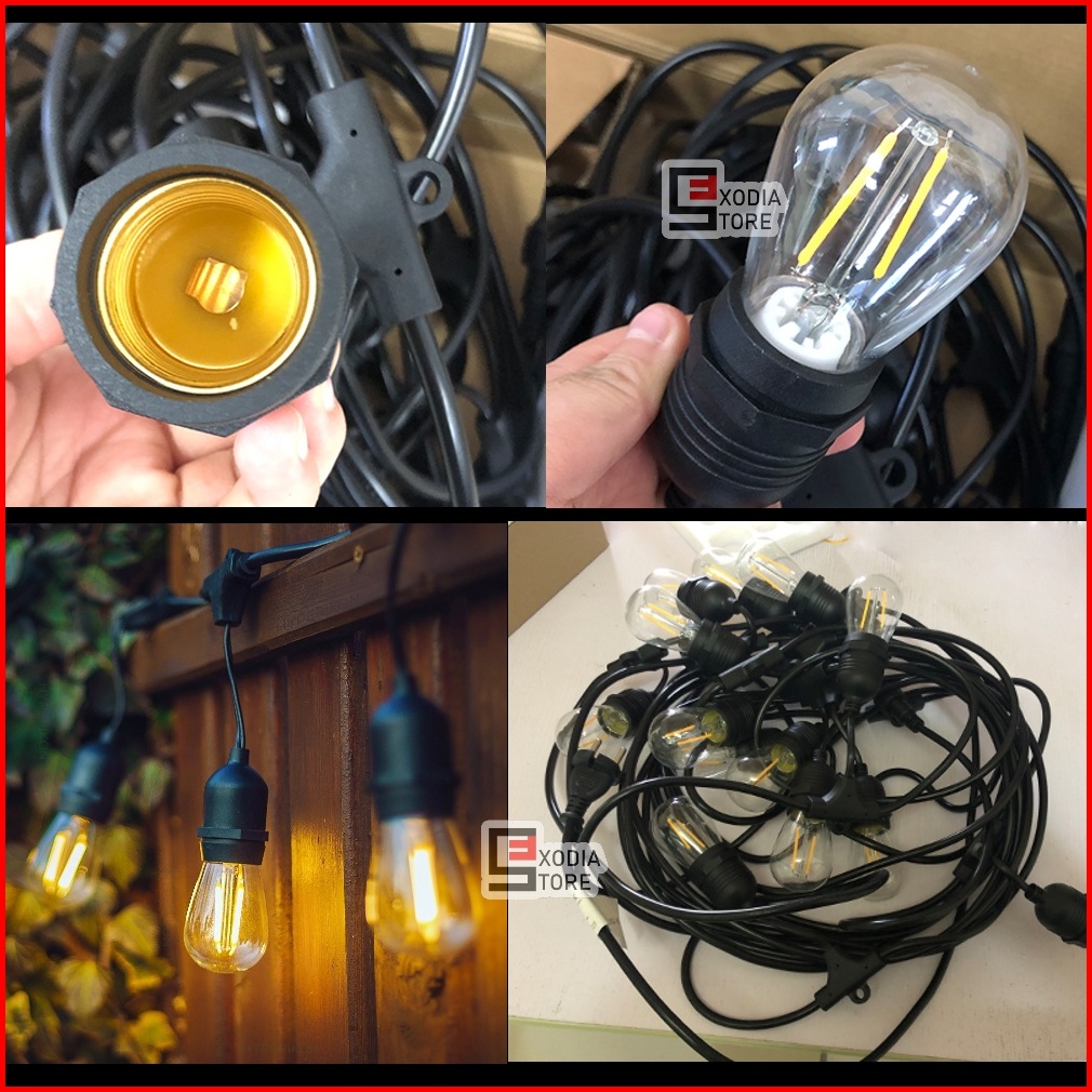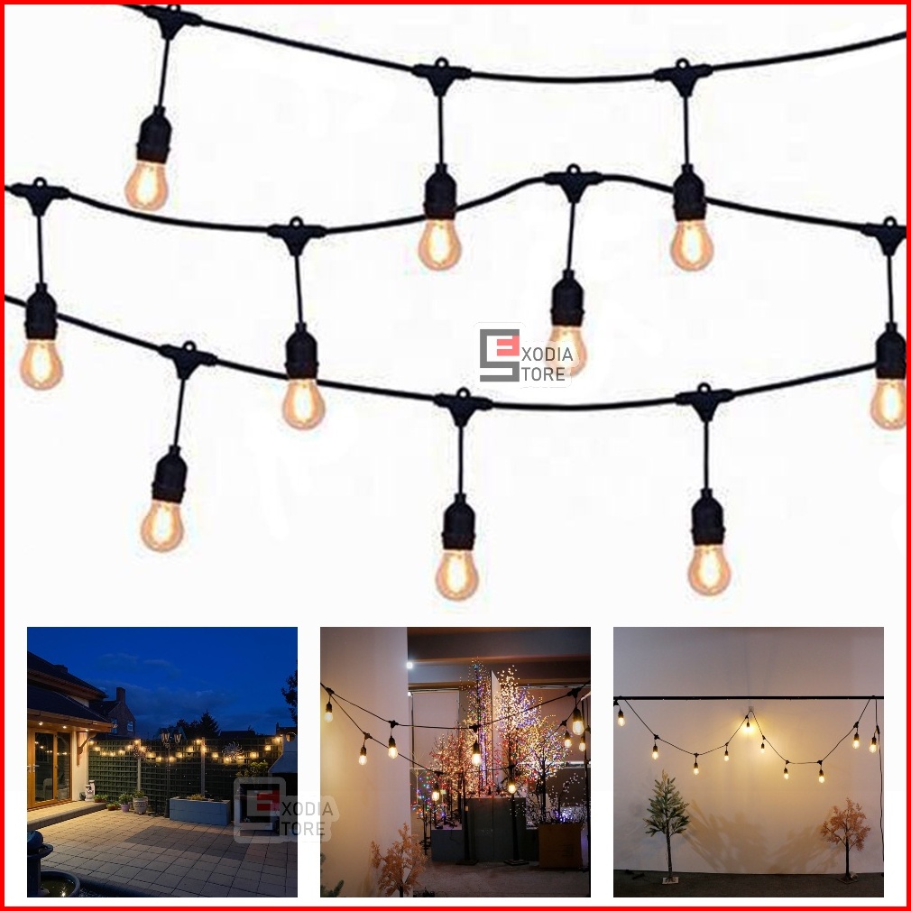 Lampu Gantung Kabel Filamen Sni Waterproof Kabel 10 Meter 10 Fitting Lampu Hias Filament String Lights E27 Classic Outdo