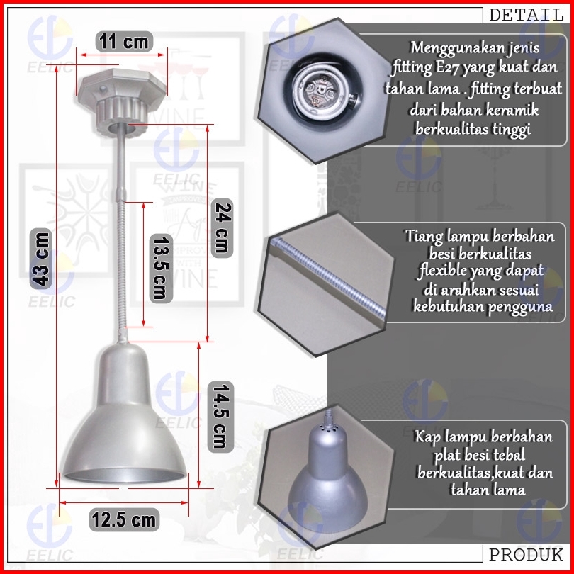 Eelic Lhg-101 Isi 3 Pcs Lampu Hias Gantung Classic Modern Dengan Tiang Flexible