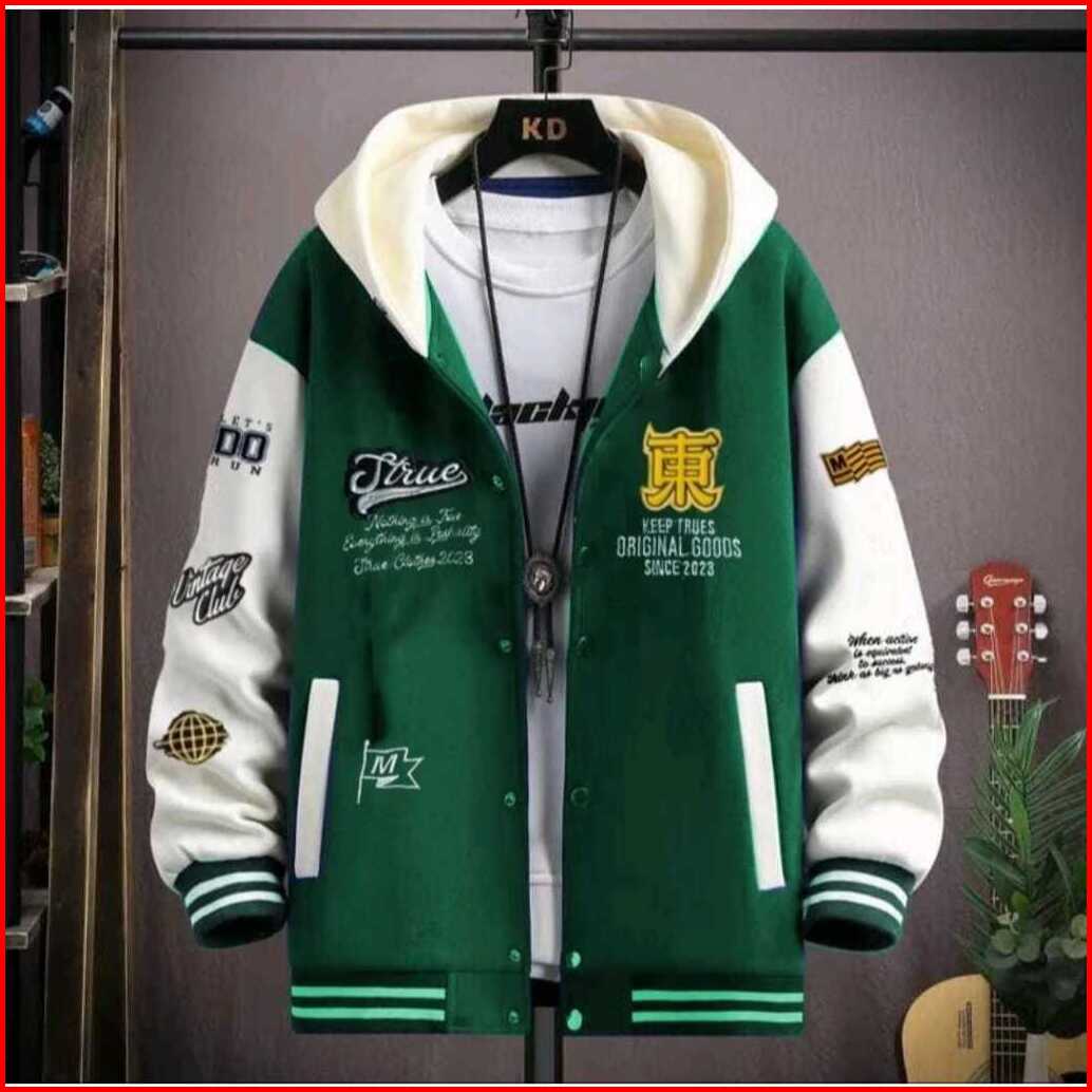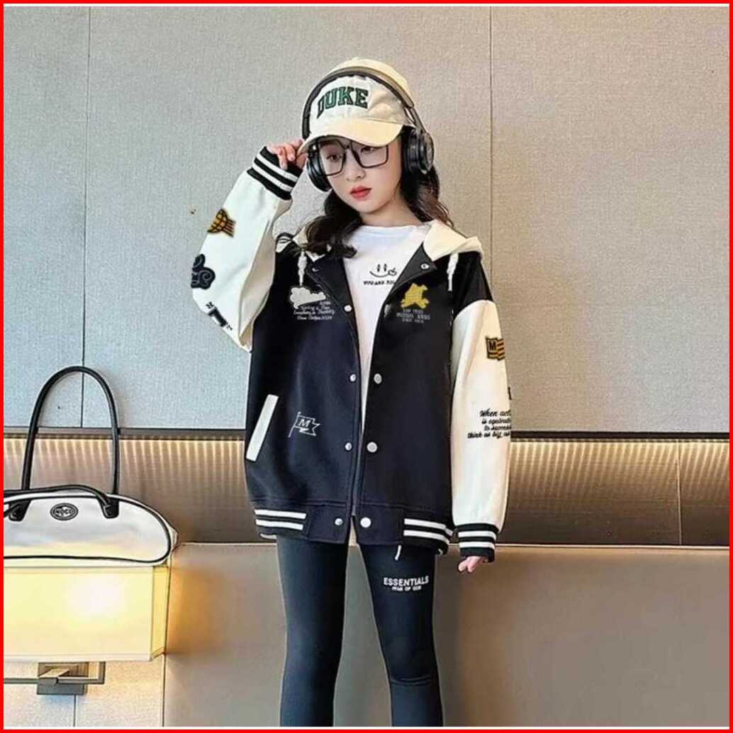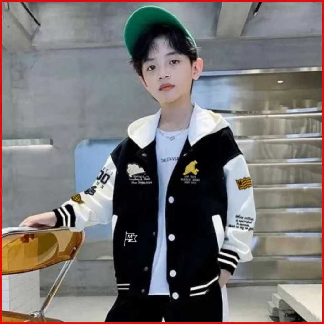 Jaket Varsity Baseball Anak Teks Full Bordir - Jaket Hoodie Varsity Anak Model Kancing Premium Quality Unisex