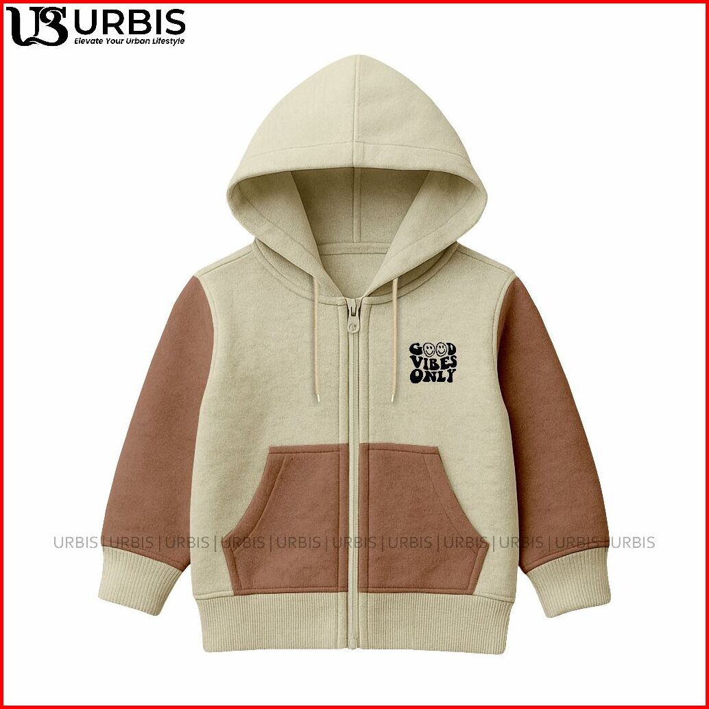 Urbis Jaket Zipper Anak Laki-laki Perempuan Kombinasi Usia 3-13 Tahun Good Vibes Only Fleece Tebal