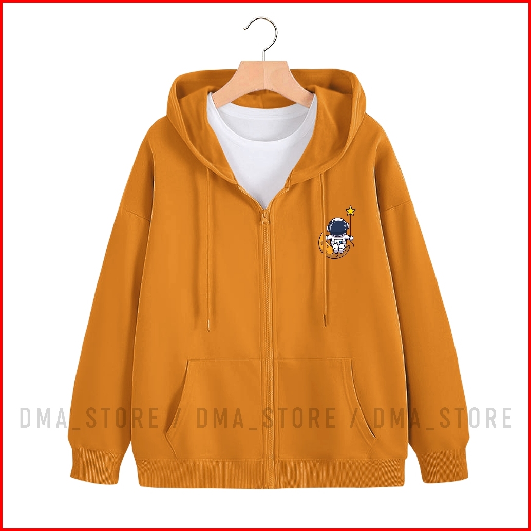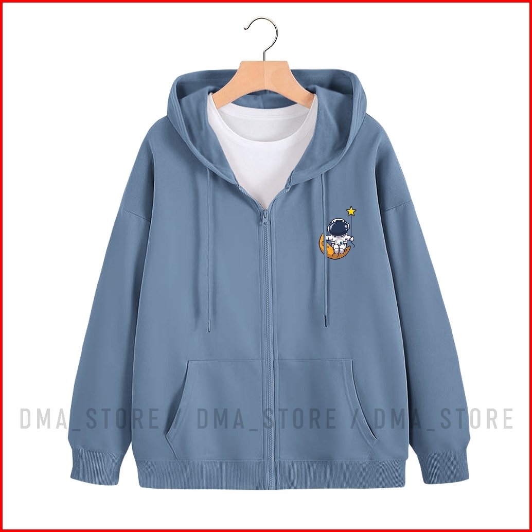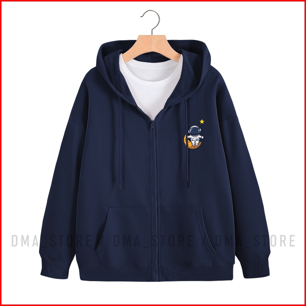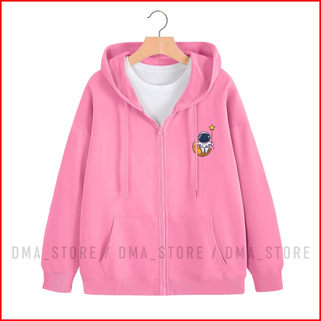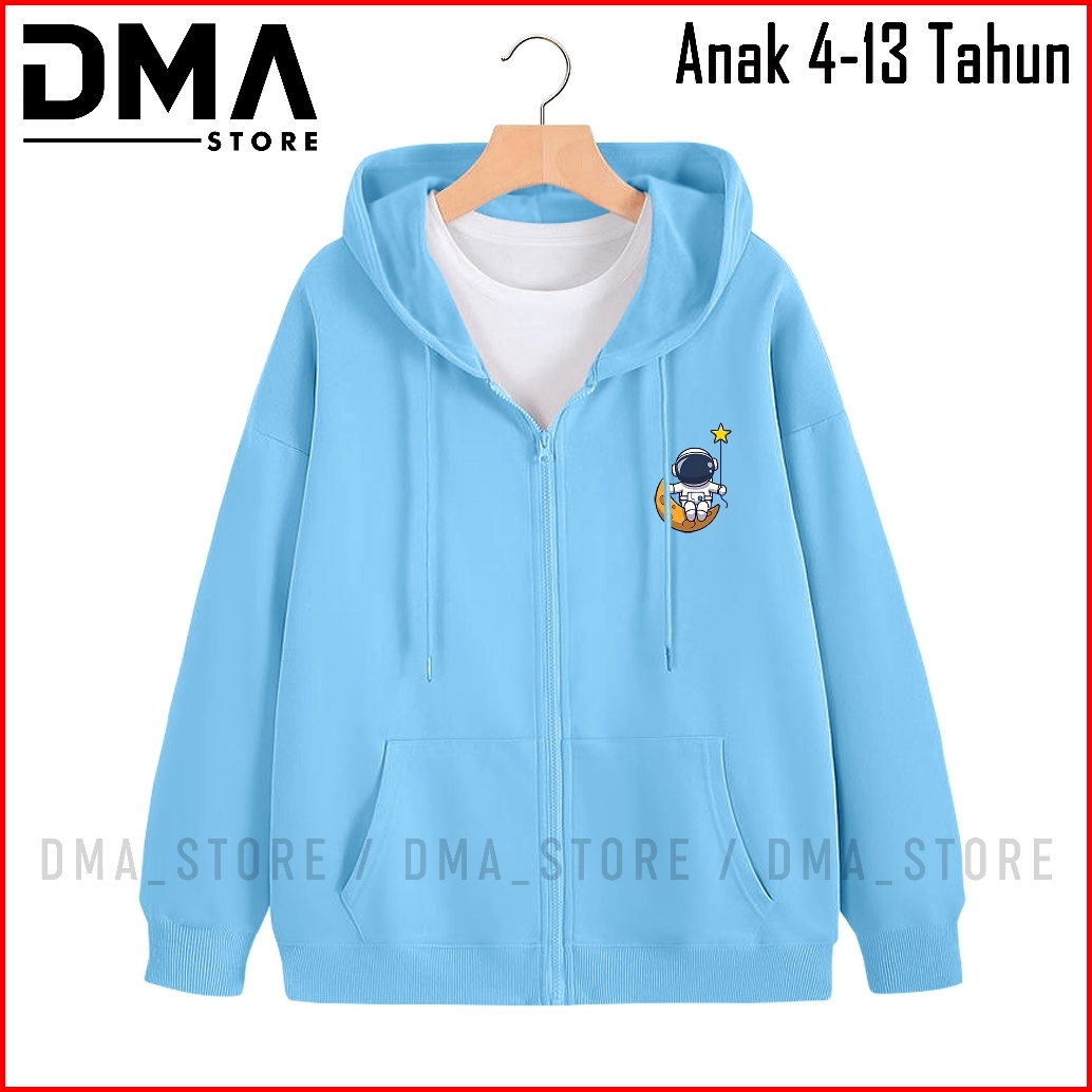 Jaket Sweater Hoodie Zipper Anak Laki-laki Perempuan Usia 4-13 Tahun Motif Sablon Astronot Bahan Fleece Tebal Premium