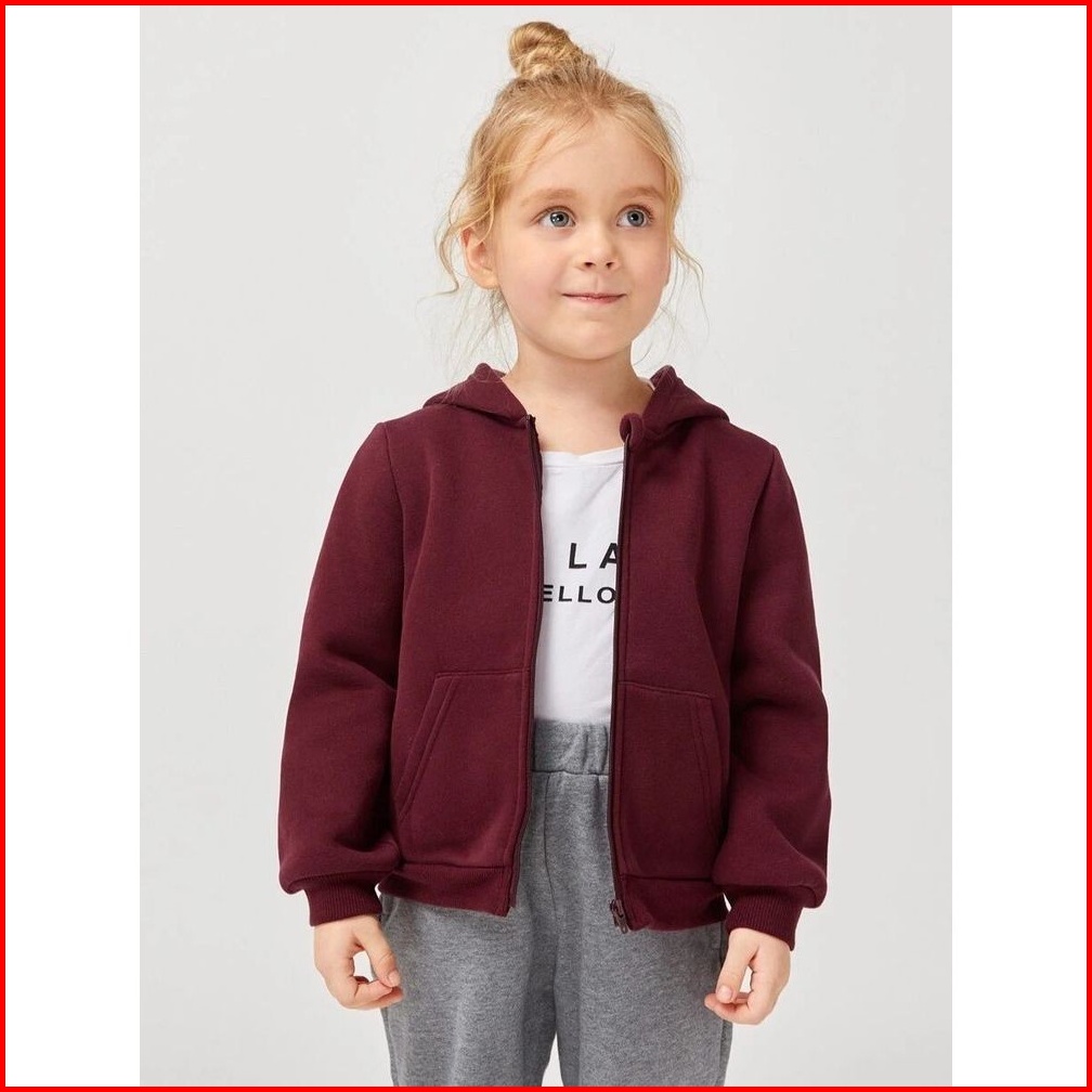 Jaket Anak Laki-laki Fleece Zipper Minizoto Polos Outerwear Casual Hoodie Fashion