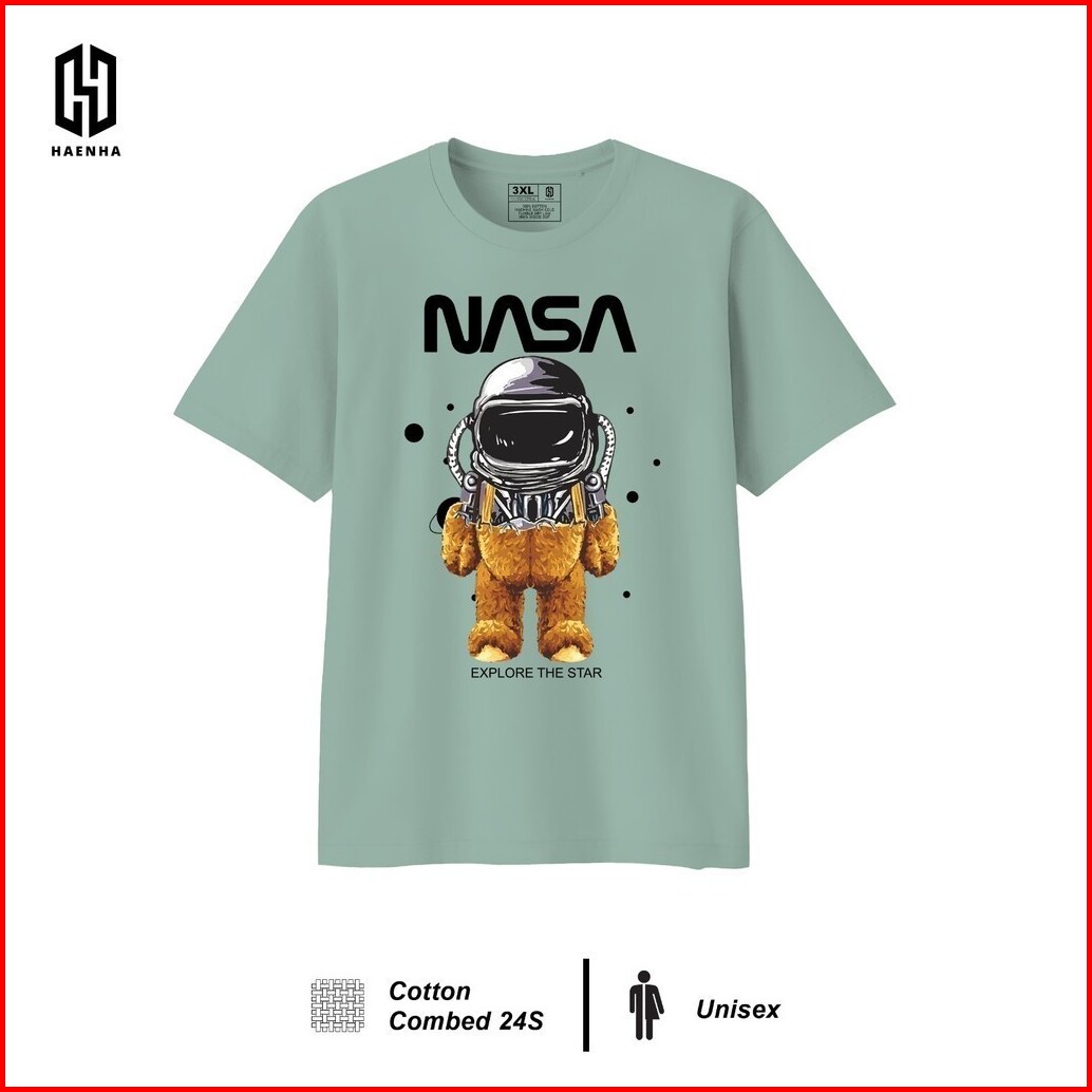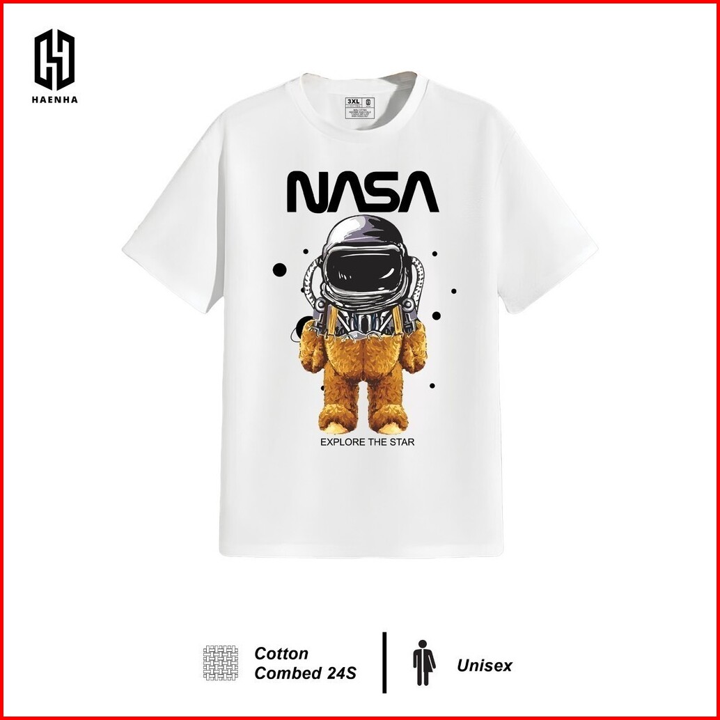 Haenha Astronot Bear Baju Kaos Distro - T Shirt Sablon Unisex