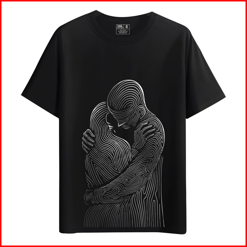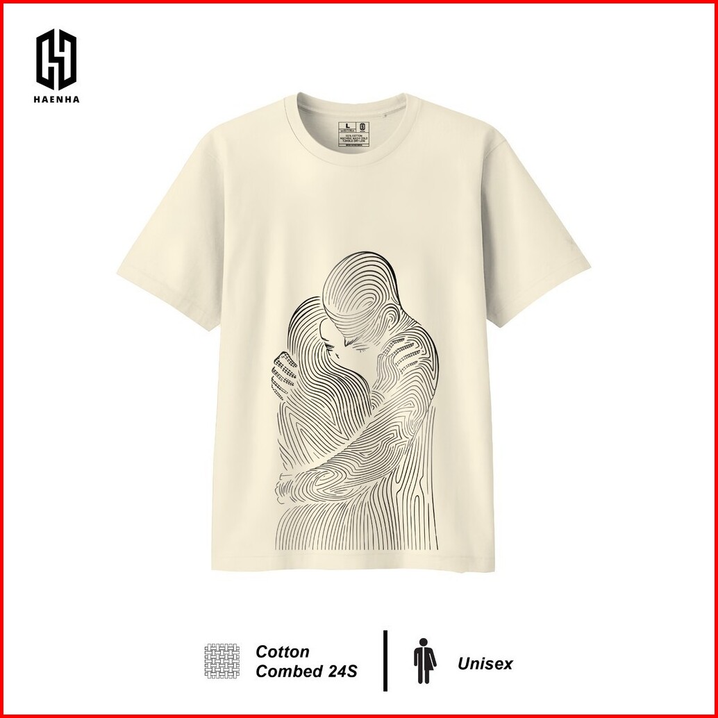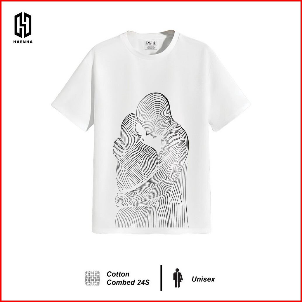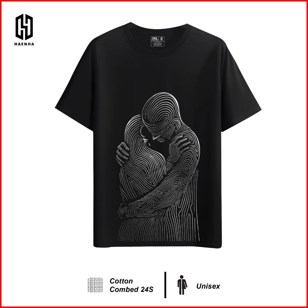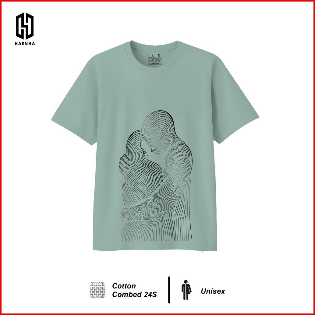 Haenha Motif Hug Baju Kaos Distro - T Shirt Sablon Unisex Black White Sage Cream