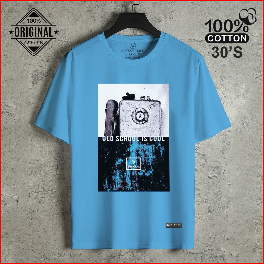T Shirt Pria Several Old School Baju Kaos Pria Distro Original Bandung Terbaru 2023 Cotton Combed 30s Sky Blue Keren Mur