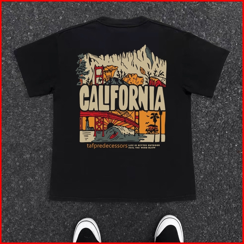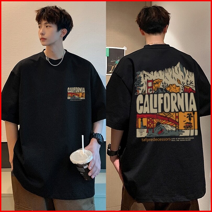 California T-shirt Pakaian Atasan Baju Kaos Oversize Pria Hitam Street Style Keren Dewasa Premium Distro Original Lengan