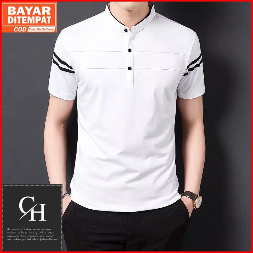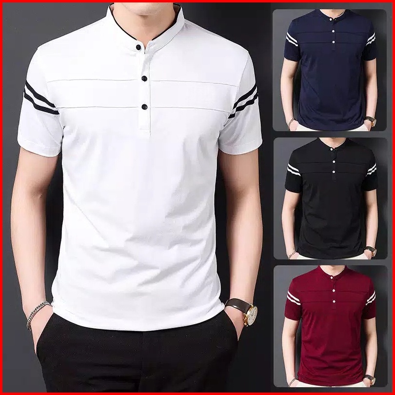 Kaos Pria Zayn Kerah Shanghai Lengan Pendek Polos Distro