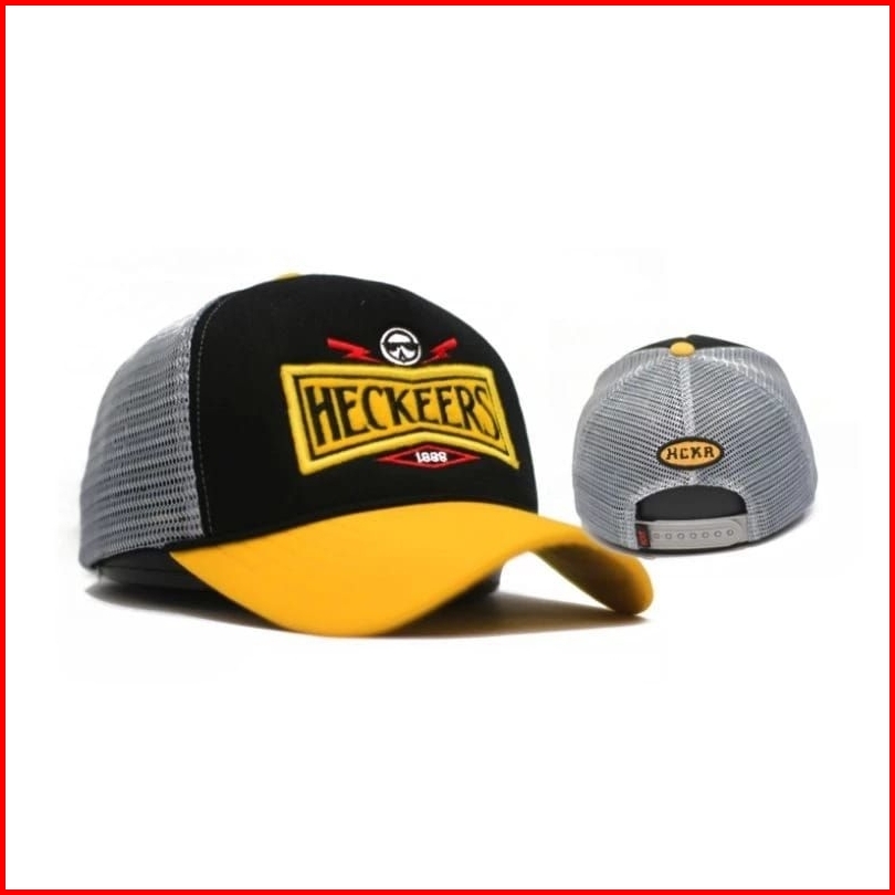 Topi Trucker Jaring Hckr Premium Distro Kuning Hitam Pria Wanita