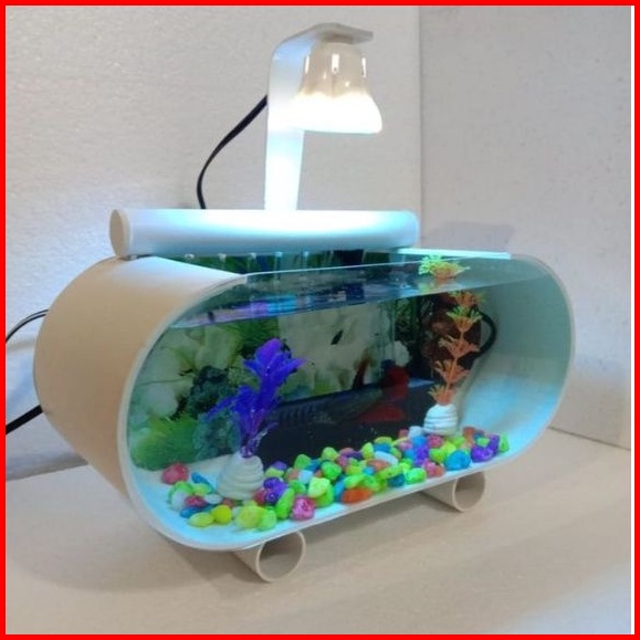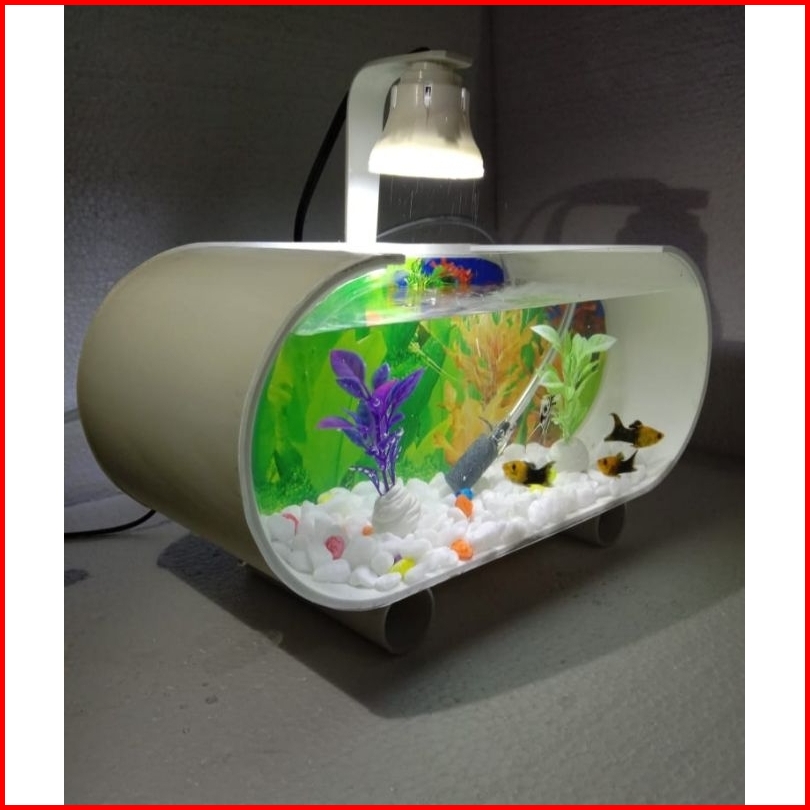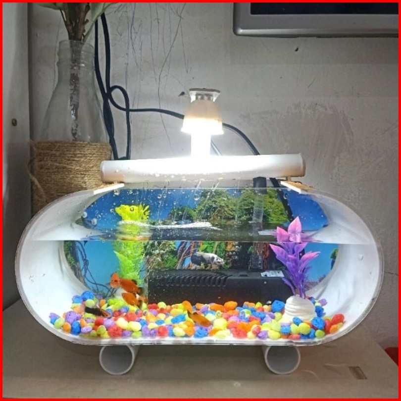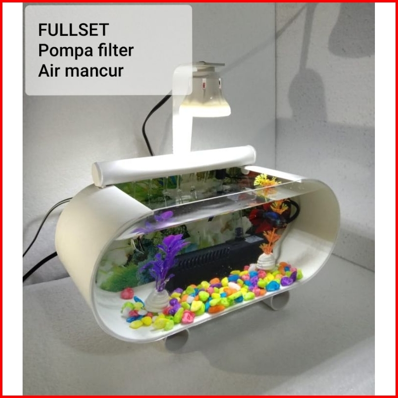 Aquarium Mini Akrilik Pvc Ikan Hias Ikan Cupang Fullset Lampu Led Pompa Filter Air Mancur Aquarium Mini Aquarium Ikan Hi