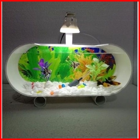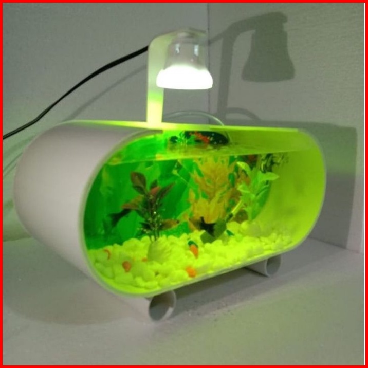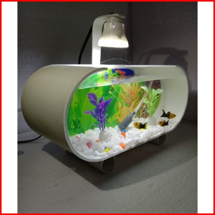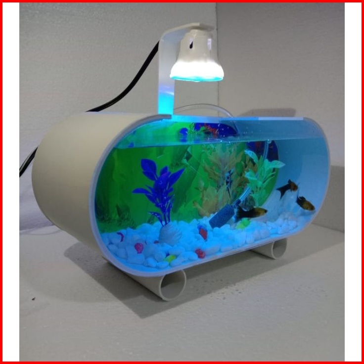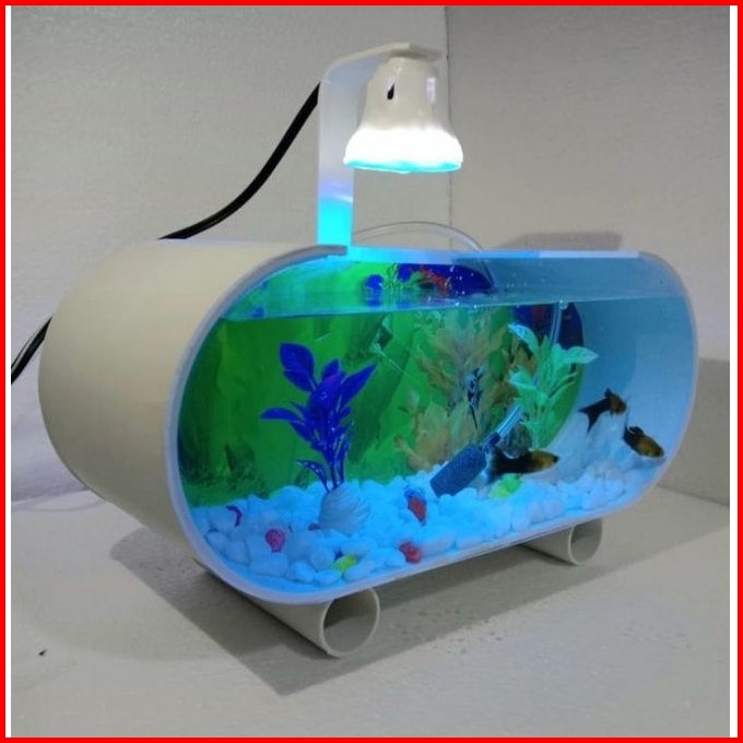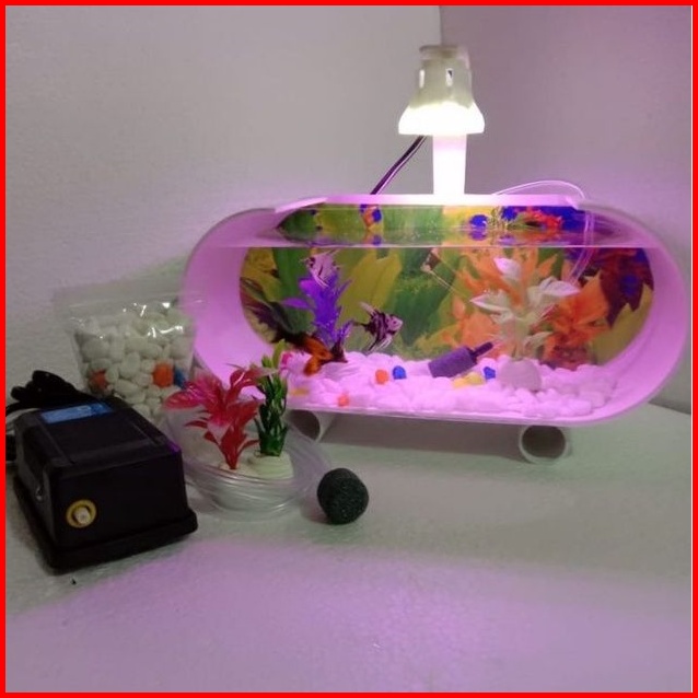 Aquarium Mini Akrilik Fullset Mesin Pompa Aerator Lampu Led Dan Ornamen Akuarium Ikan Hias Aquarium Ikan Cupang Aquarium