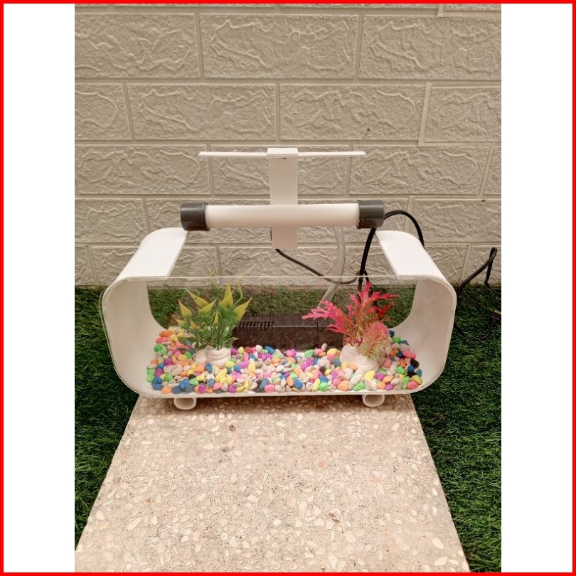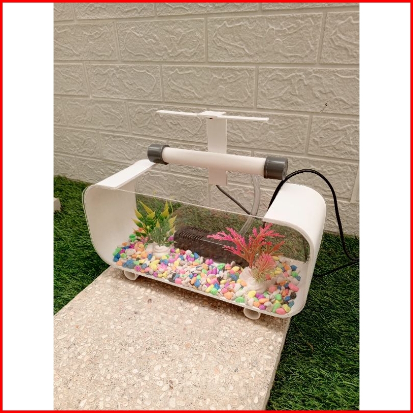 Aquarium Akrilik Mini Pancuran Pompa Filter Dan Lampu