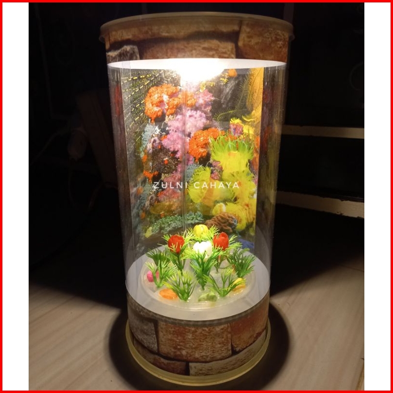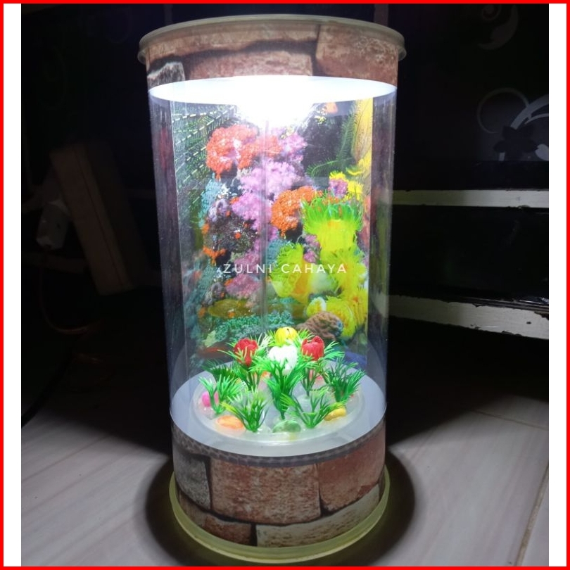 Aquarium Mini Ukuran Jumbo Plus Lampu Colokan Listrik 3wat Asessoris