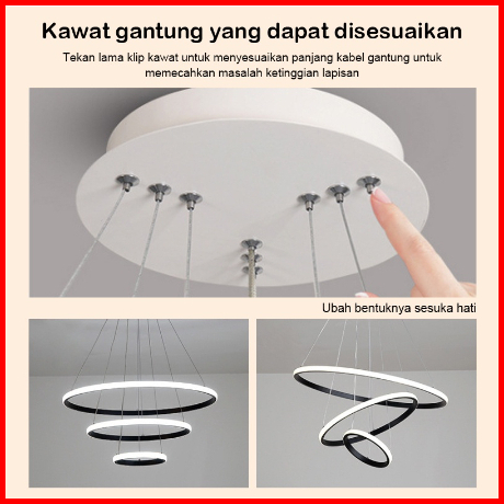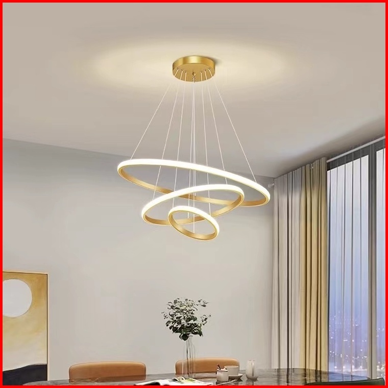 Lampu Hias Gantung Ruang Meja Tamu Minimalis Modern 3 Ring Led Chandelier Ceiling