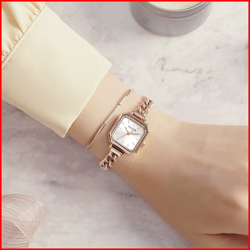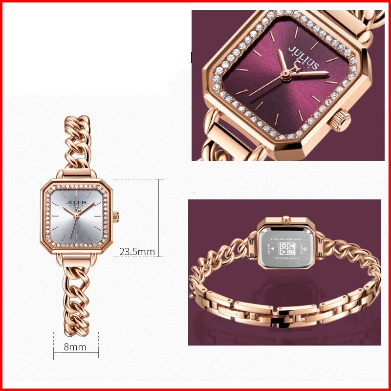 Julius Zircon Small Square Watch Elegant Bracelet Watch Ladies Waterproof Quartz Watch Female Ja-1292