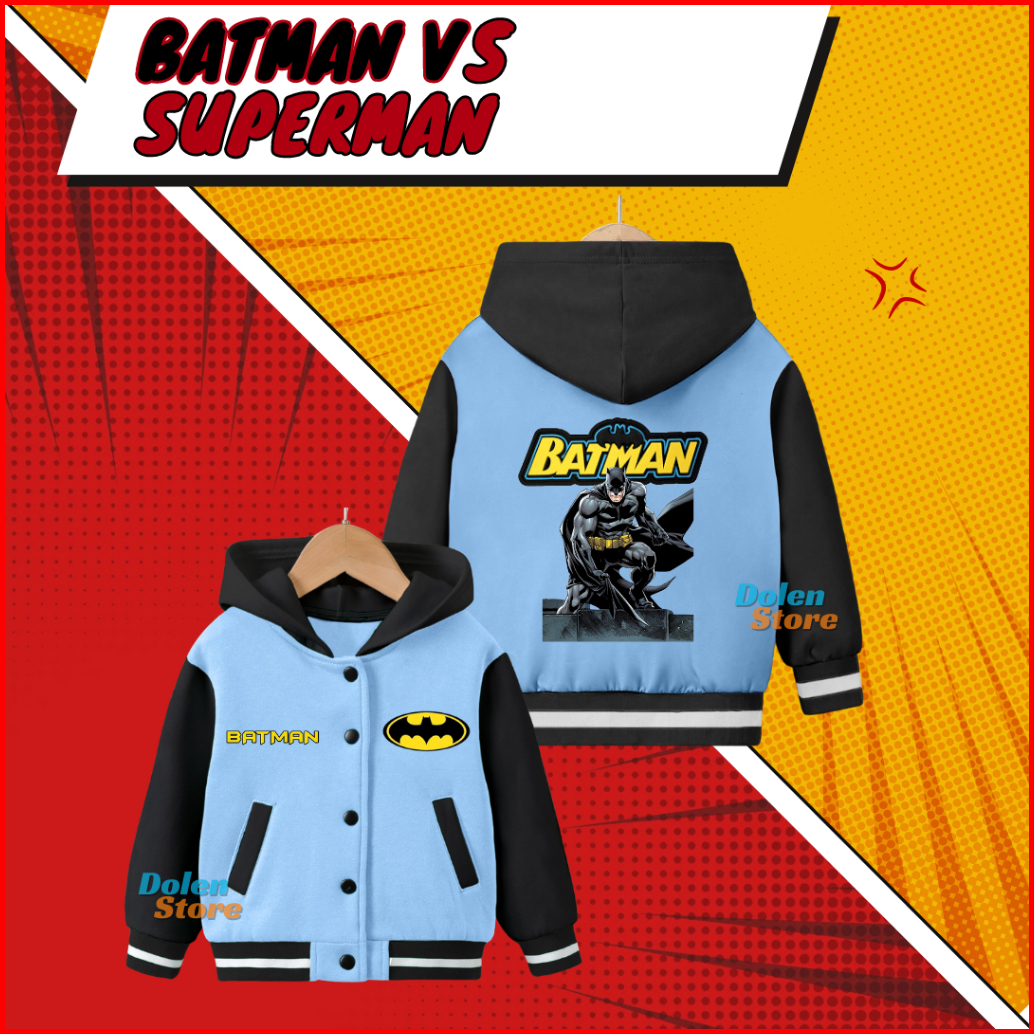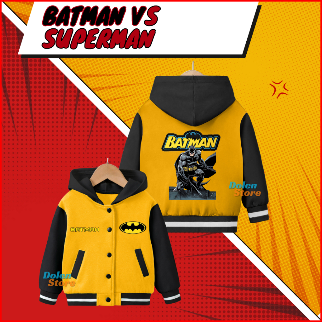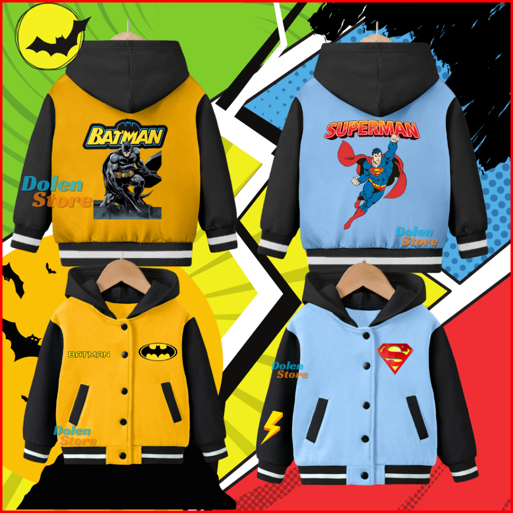 Jaket Anak Laki Laki Batman Dan Superman Varsity Hoodie Usia 2-12 Tahun