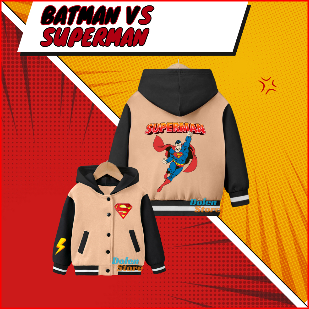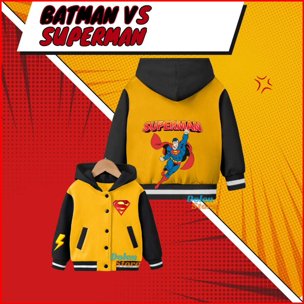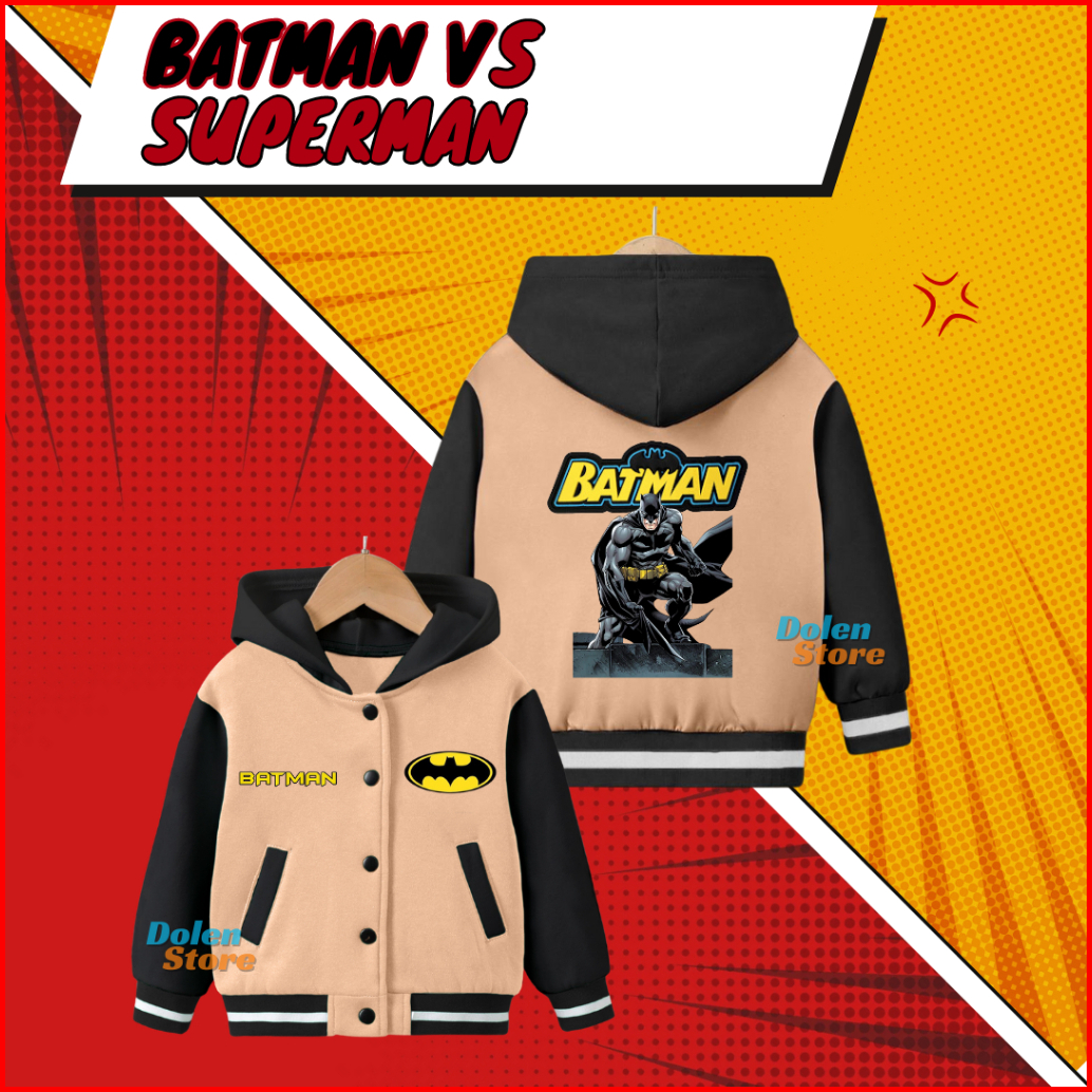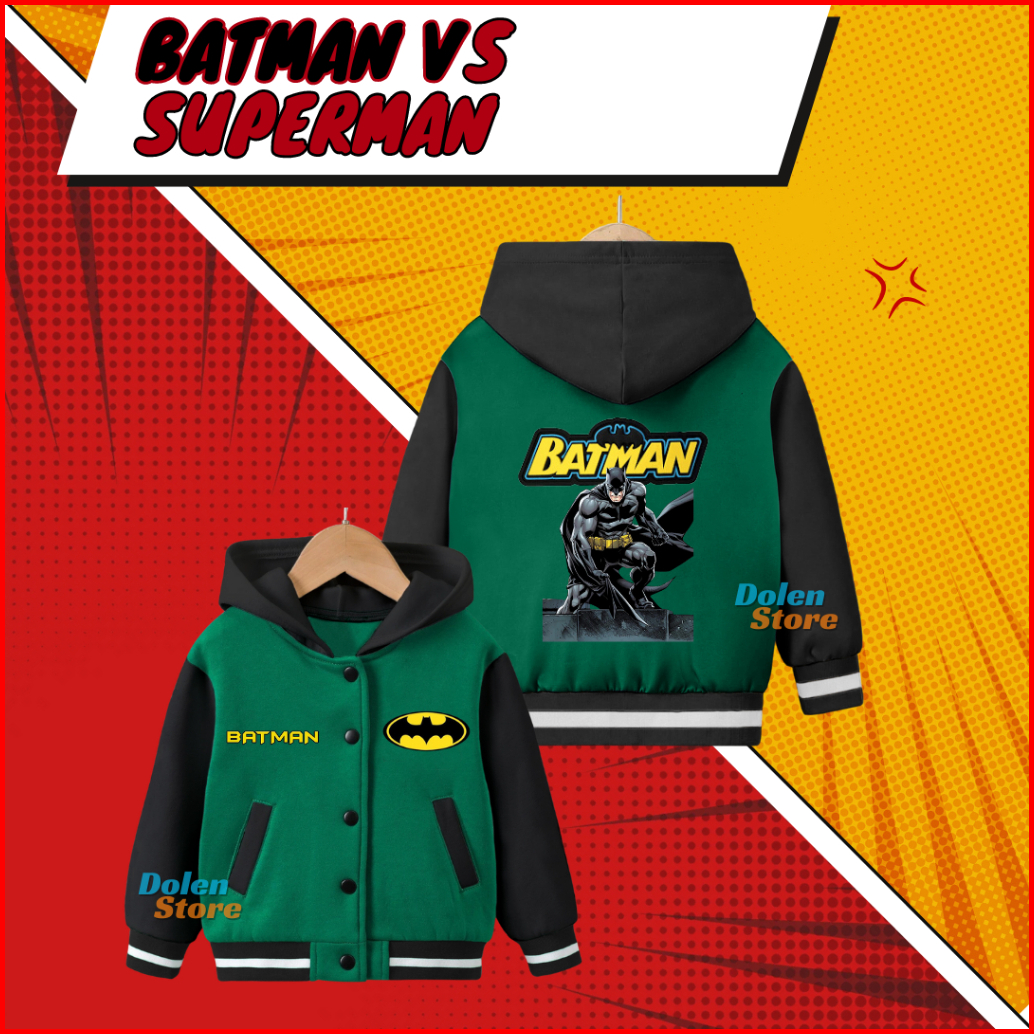 Jaket Anak Laki Laki Batman Dan Superman Varsity Hoodie Usia 2-12 Tahun