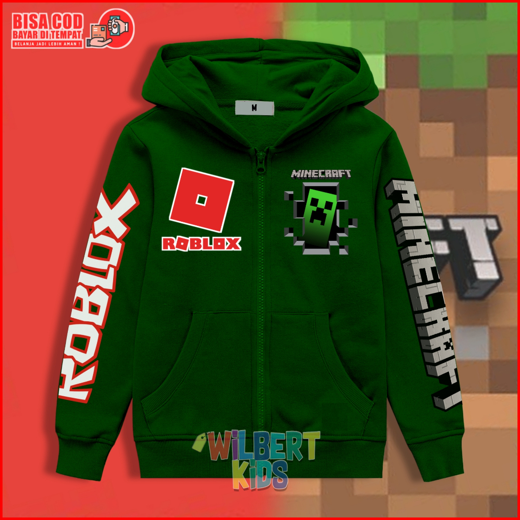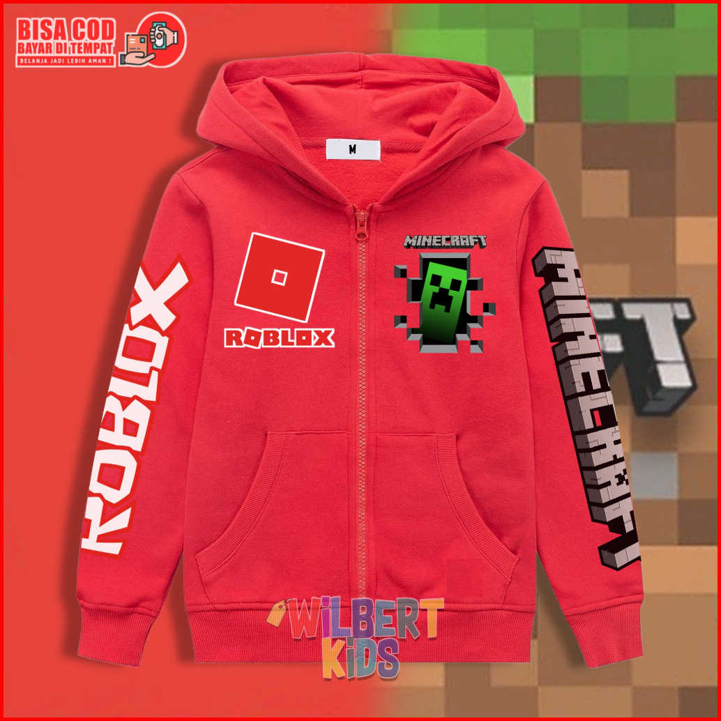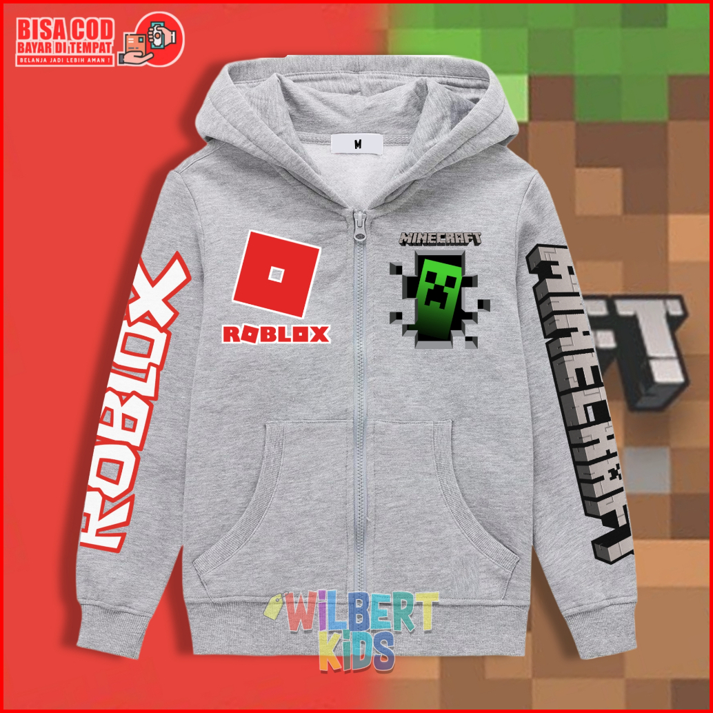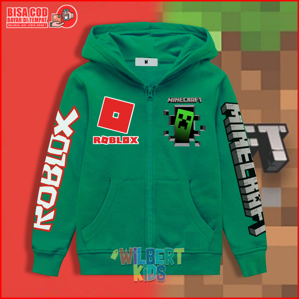 Jaket Hoodie Anak Roblox X Minecraft Hoodie Zipper Anak Minecraft Roblox