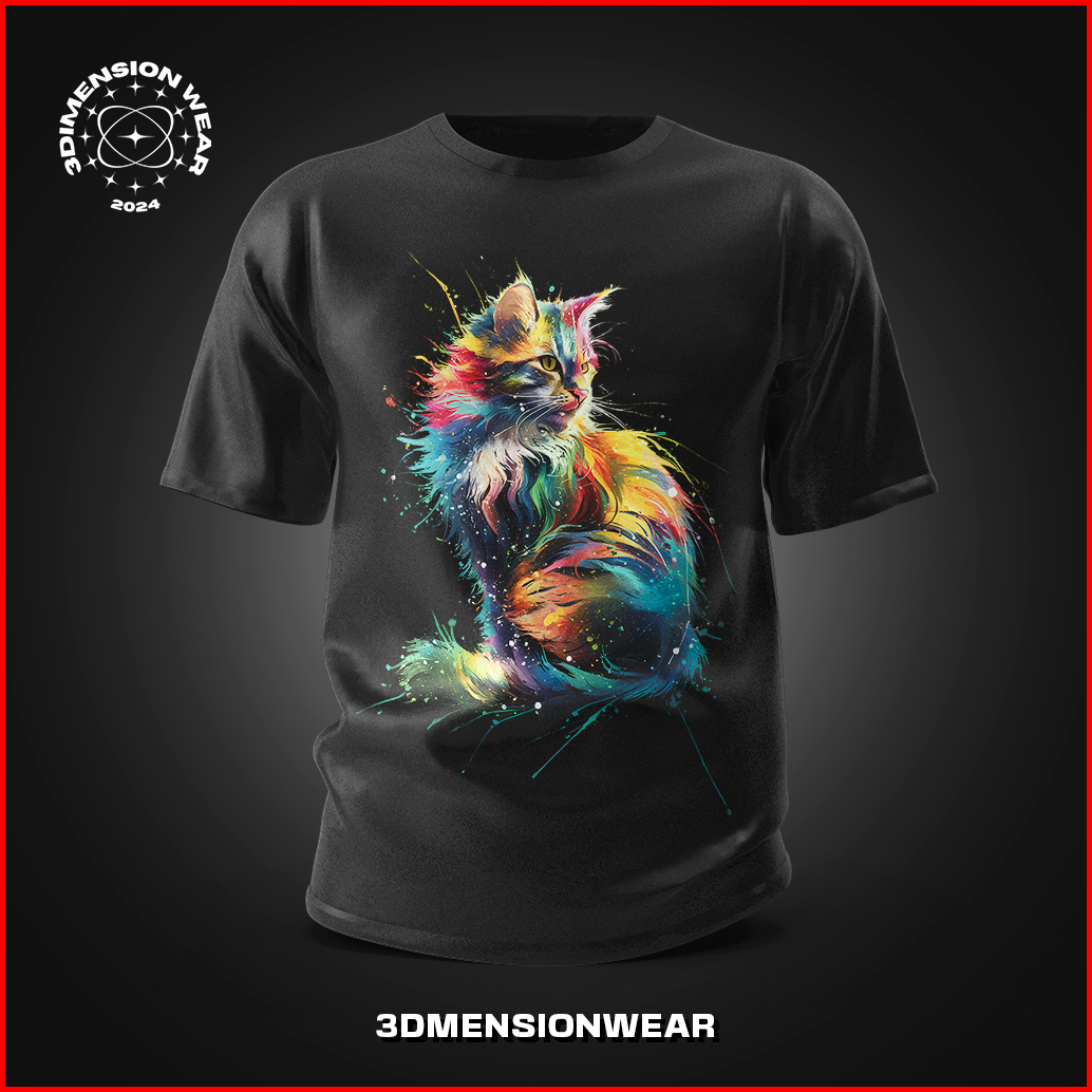 3dimensionwear - Kaos Distro Premium Original 3d Abstract Art Cat - Dt0037