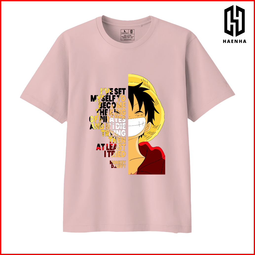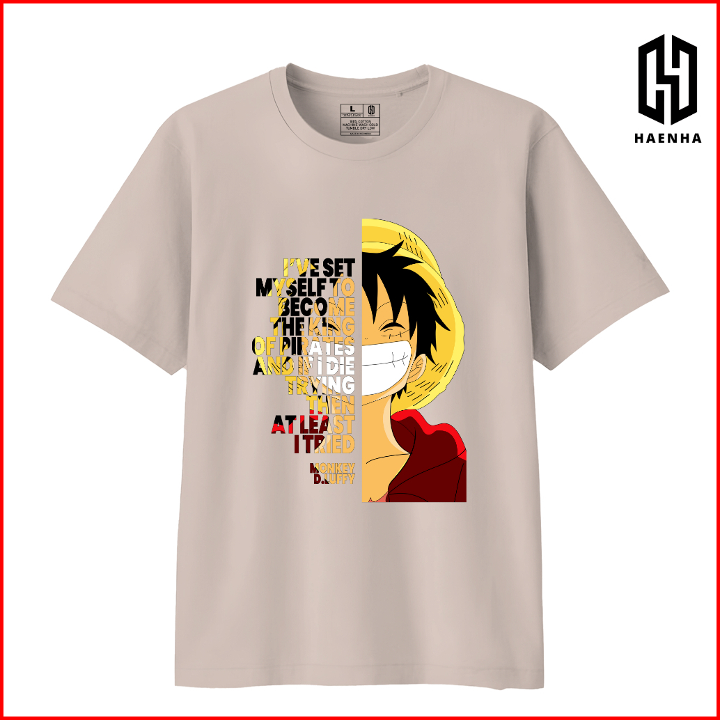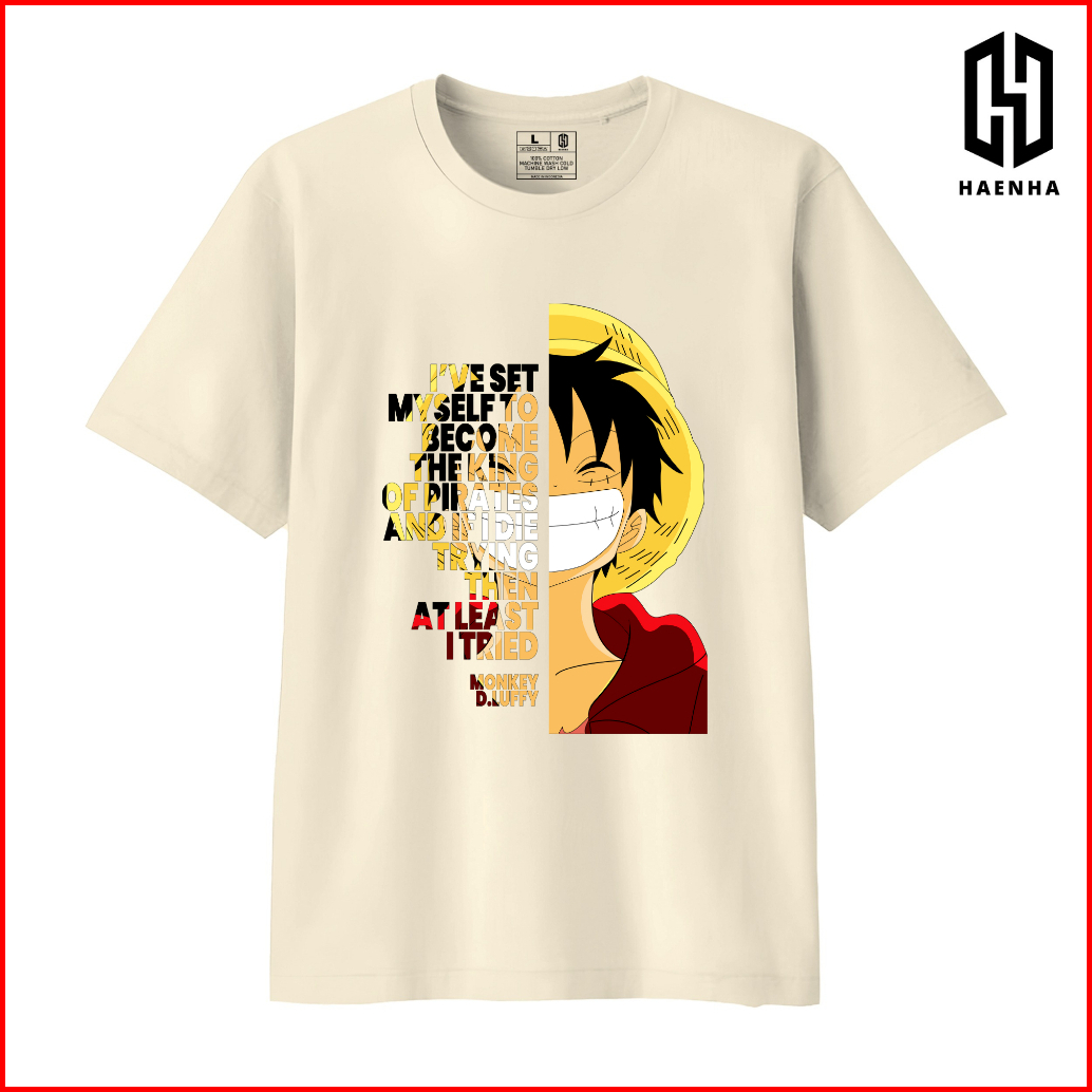 Haenha One Piece Ive Set My Self Baju Kaos Distro - T Shirt Sablon Unisex Black White Sage Cream