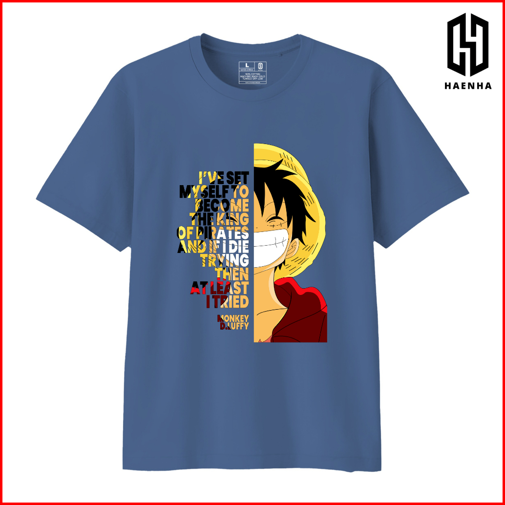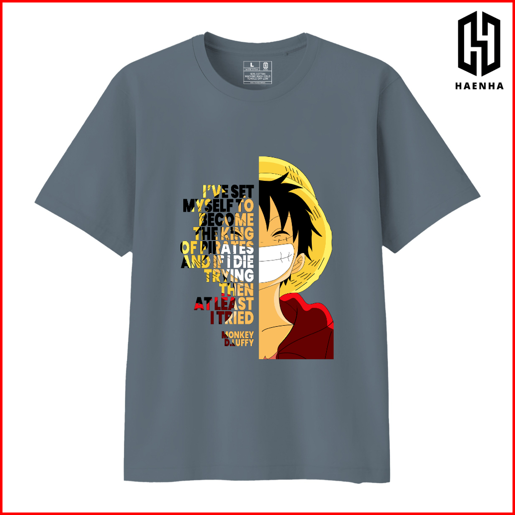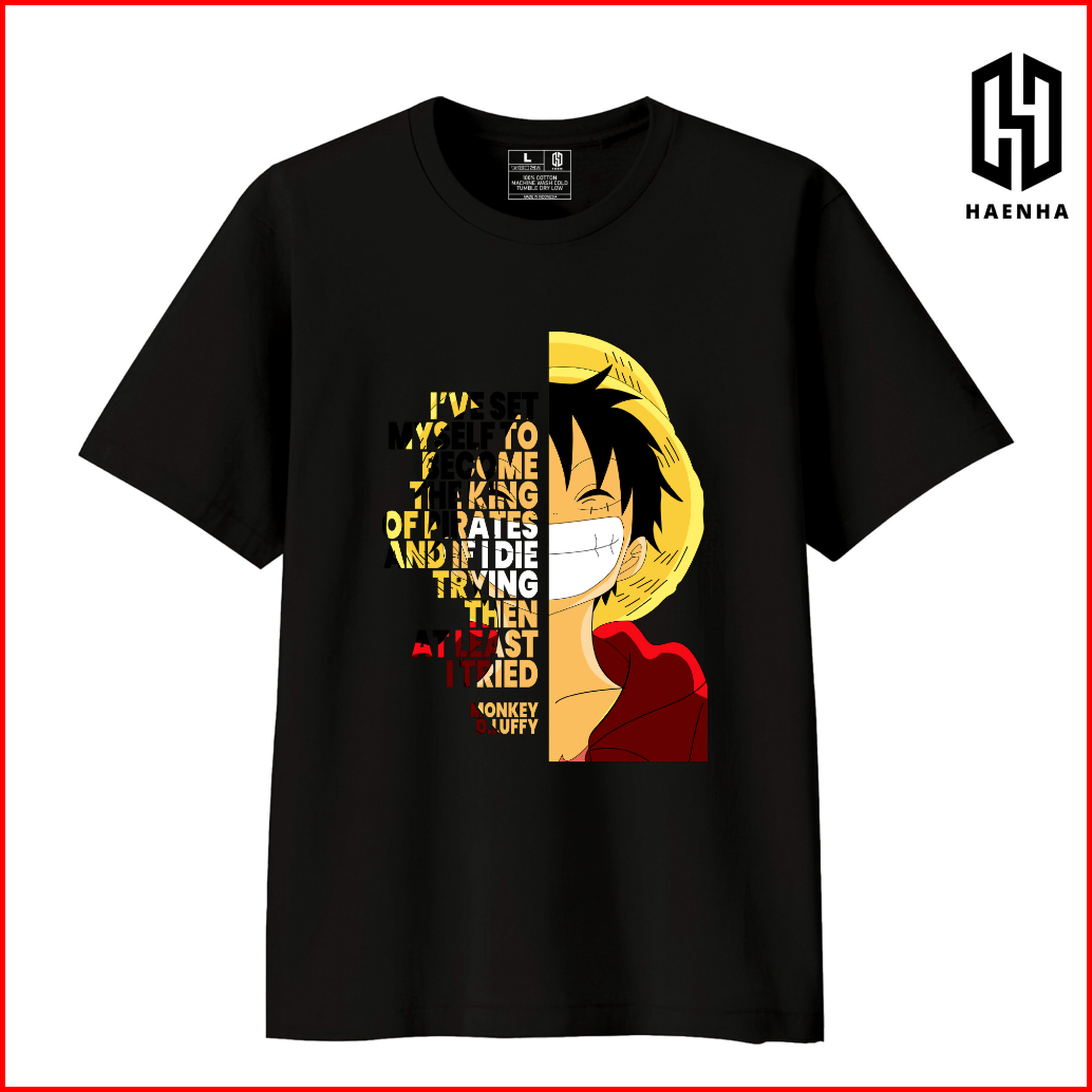 Haenha One Piece Ive Set My Self Baju Kaos Distro - T Shirt Sablon Unisex Black White Sage Cream