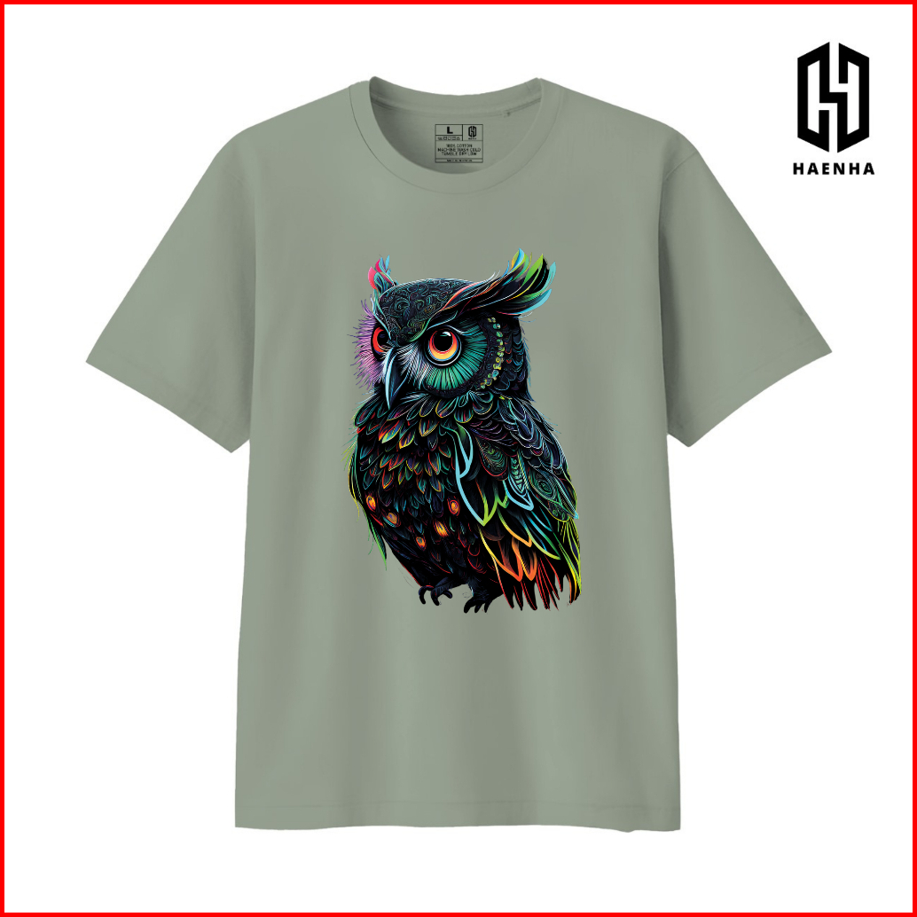 Haenha Color Splash Owl Baju Kaos Distro - T Shirt Sablon Unisex