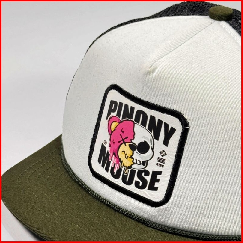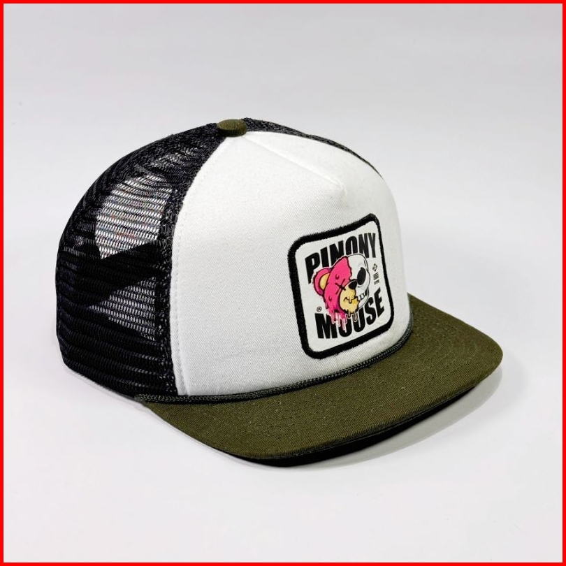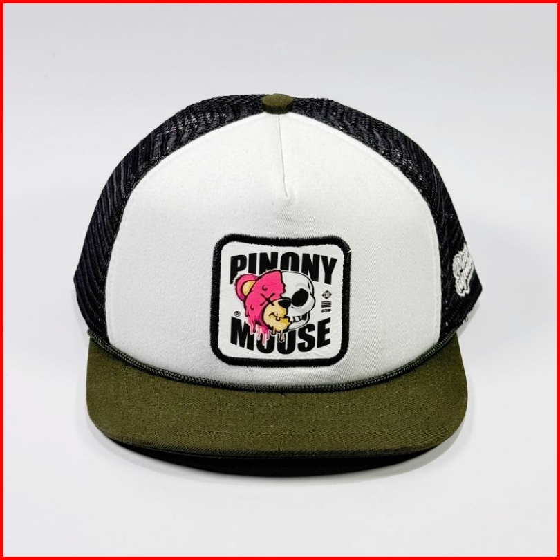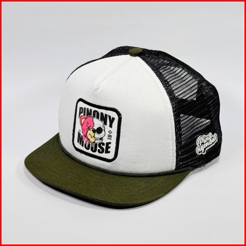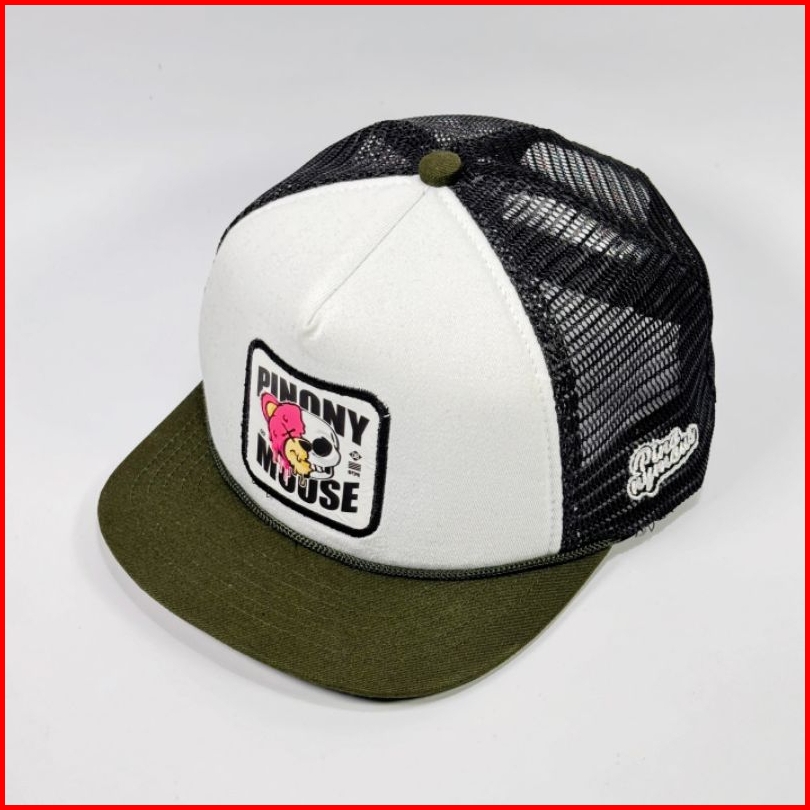 New Trucker Hat Patch Visor Pendek Pinonymous Army Hitam Putih Ovox