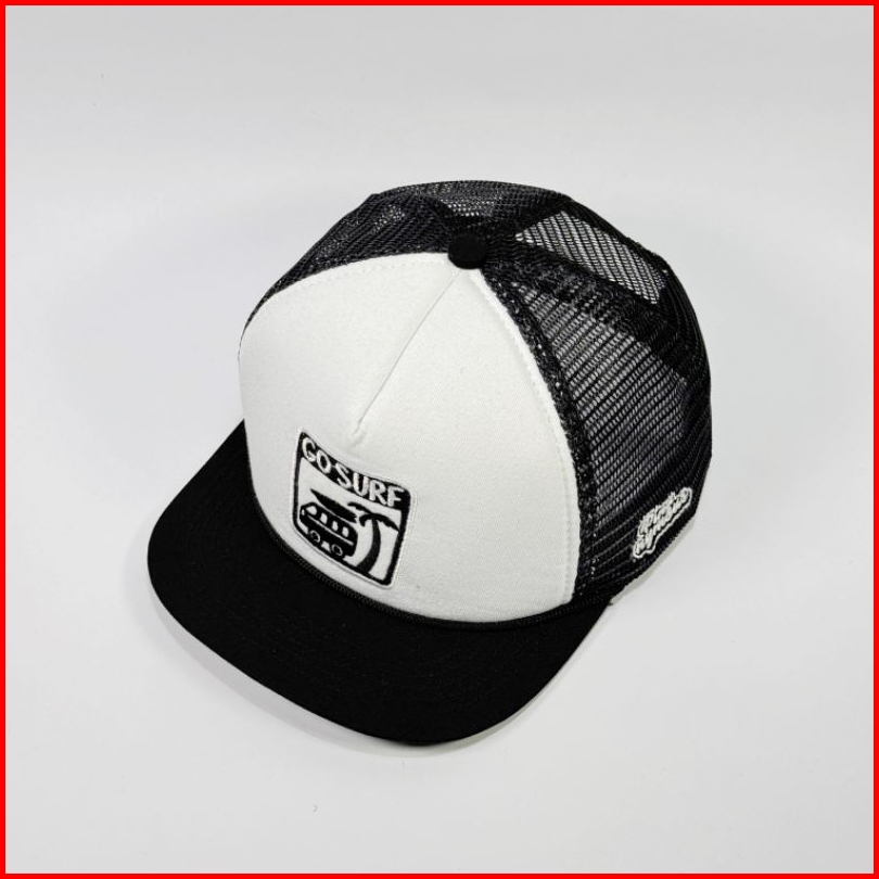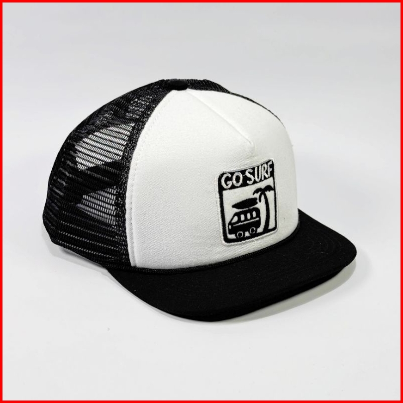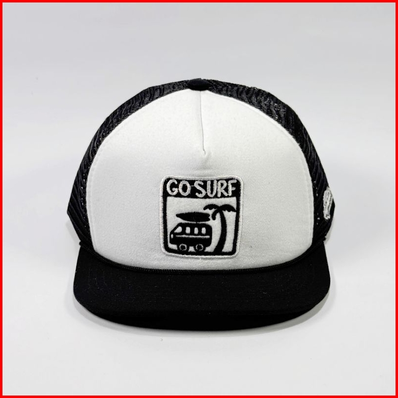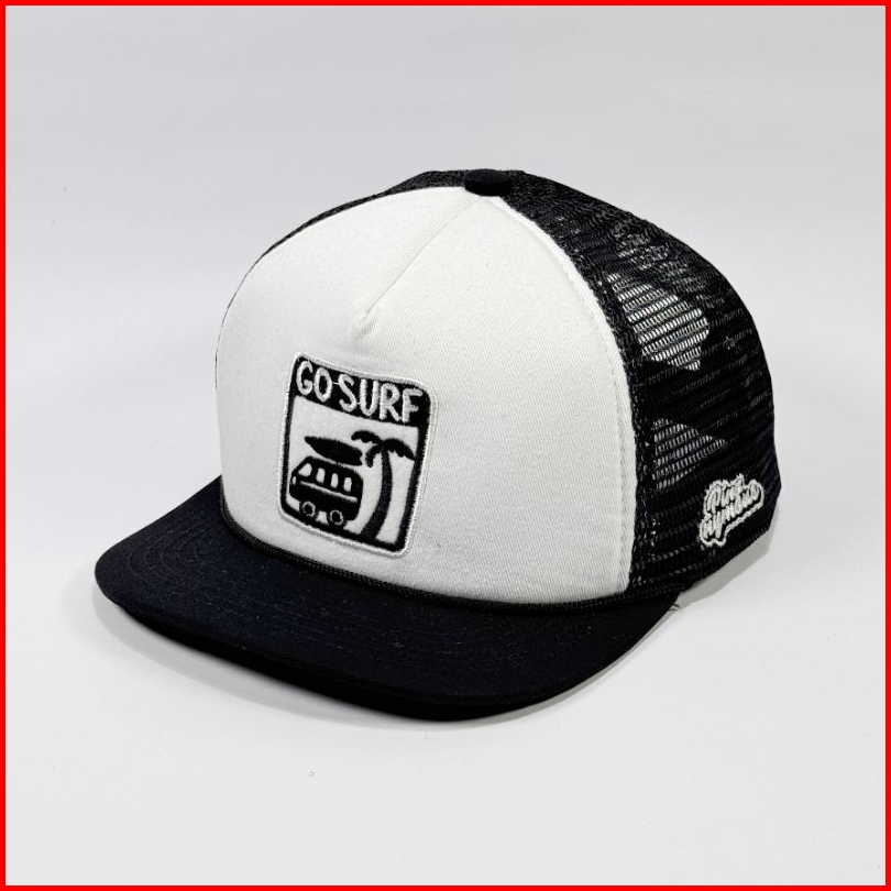 Trucker Hat Visor Pendek Omidoki Go Surf Hitam Putih