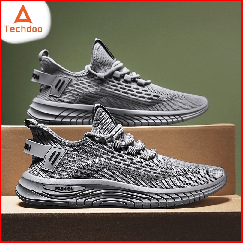 Techdoo Sepatu Sneakers Pria Olahraga Sekolah Sepatu Casual Kerja Santai Anti Slip Spatu Kets Cowok Kekinian Mr157