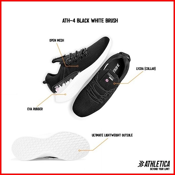Athletica - Ath-4 Black White Brush Sepatu Olahraga Pria Wanita