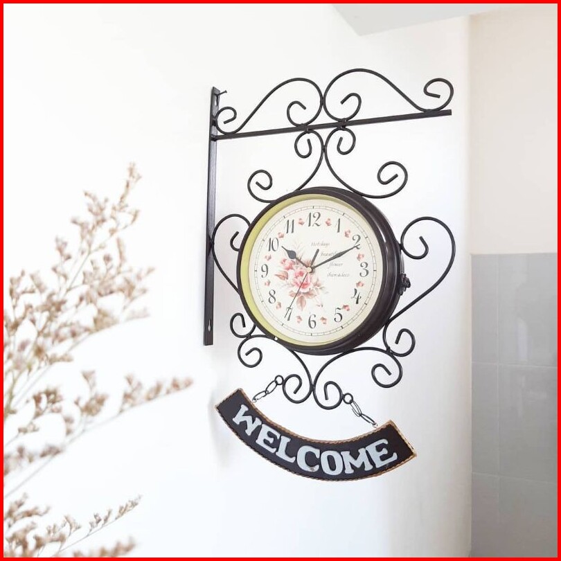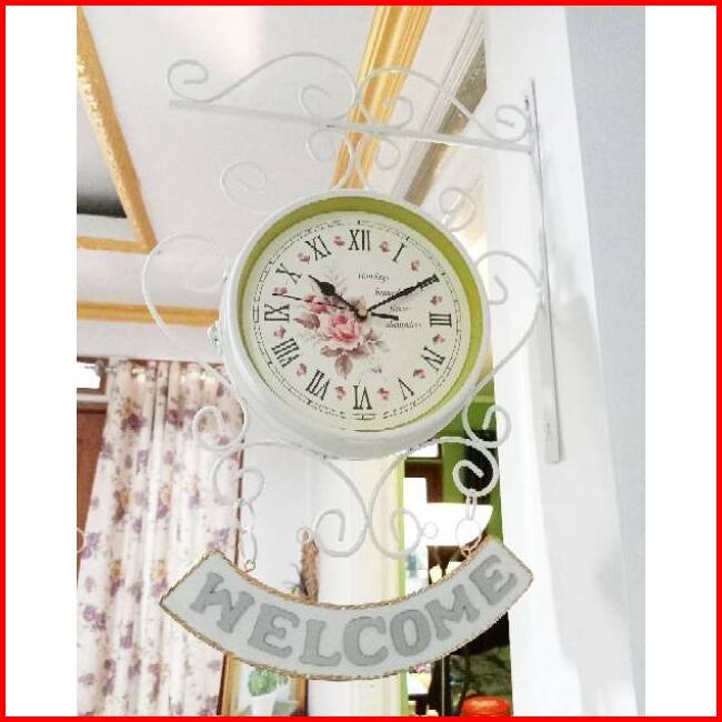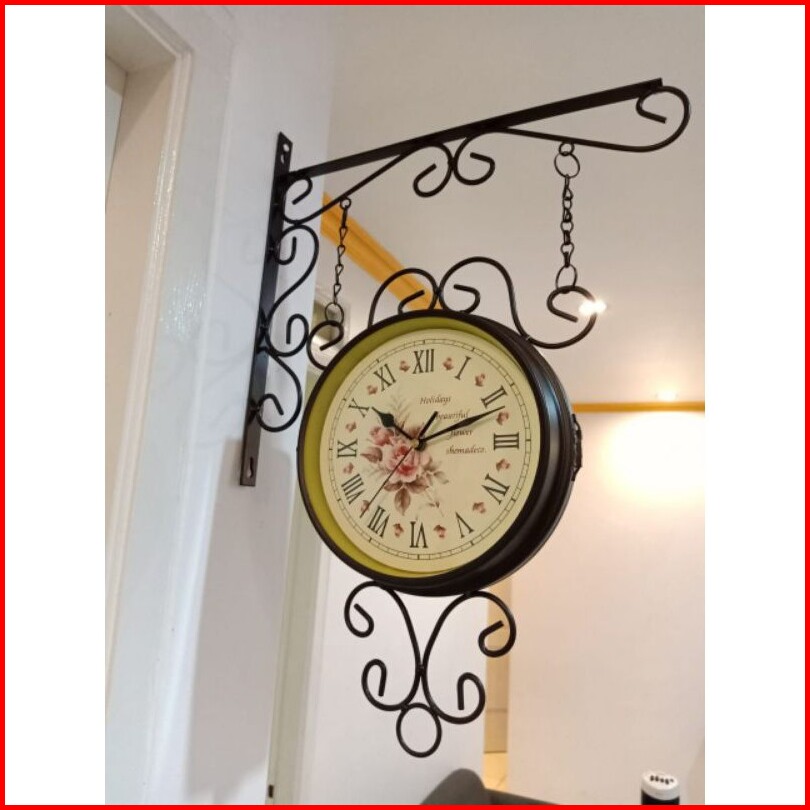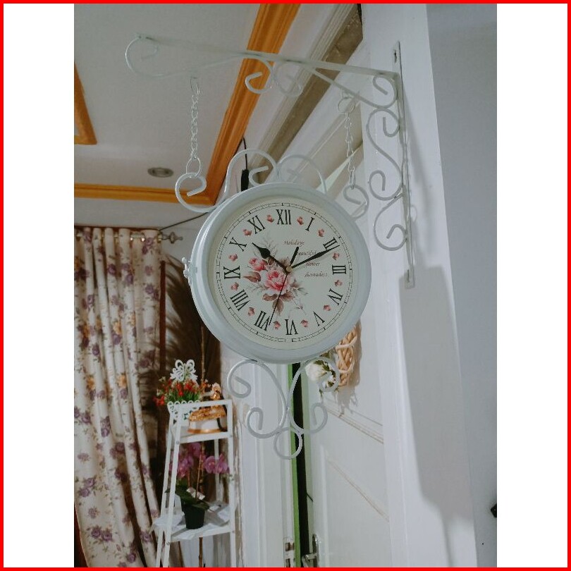 Jam Gantung Shabby 2 Sisi Jam Dinding Vintage Jam Dinding Bolak Balik