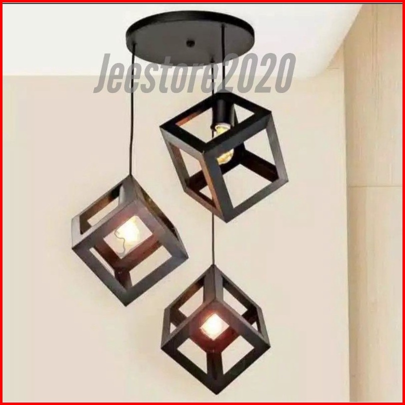 Lampu Gantung Kubus Minimalis 1 Set Isi 3 Pcs