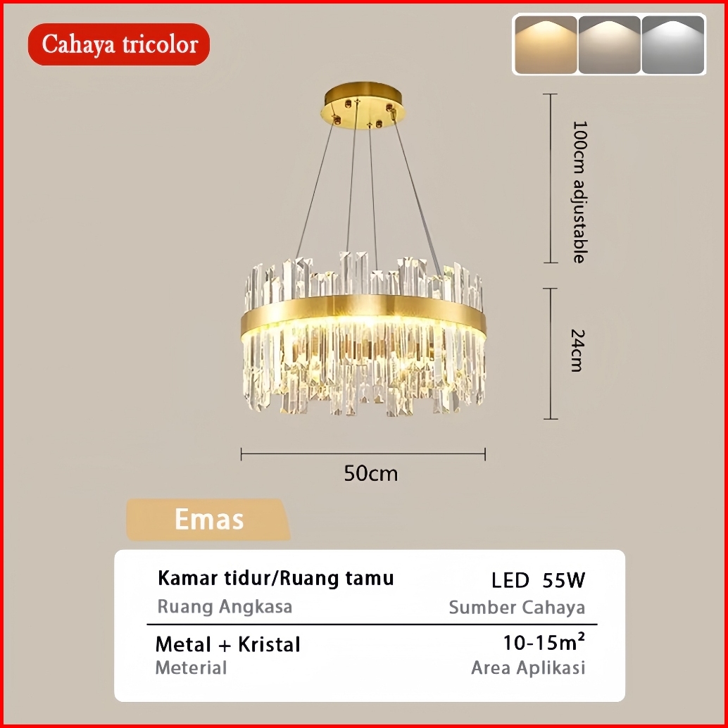 Kml-kemilng Lampu Gantung Nordic Kristal Mewah 3 Warna Led Bulat Chandelier Lampu Ruang Tamu Lampu Dapur Lampu Kamar Tid