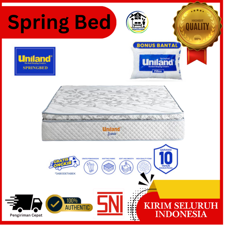 SPRING BED 180X200 UNILAND SCANIA PILLOWTOP PARIS DOBLE MURAH ANTI LEMBAB TEBAL GRATIS BANTAL EMPUK
