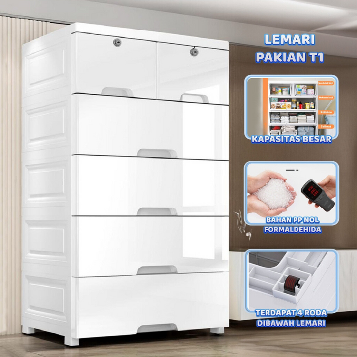 Lemari Pakaian Plastik 5 Tingkat / Rak Susun Penyimpanan Baju / Laci Susun Cabinet Plastik TANPA DP