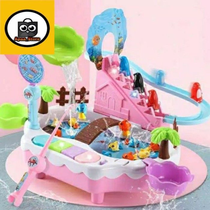 Mainan Anak 2 in 1 Pancingan Ikan Magnet Kombi Track Racers Penguin