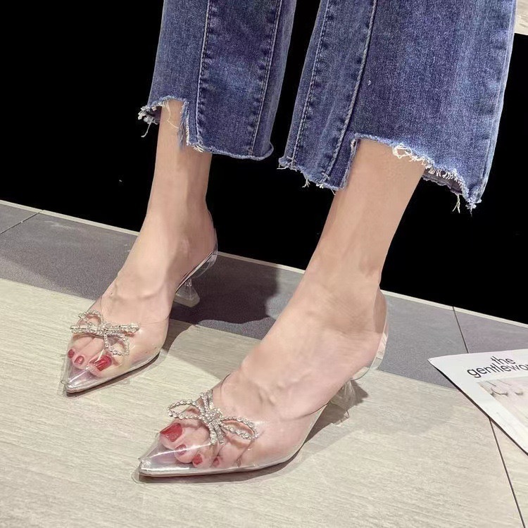 HIGH HEELS WANITA CANTIK SANDAL PESTA KEKINIAN HAK KACA RUNCING CHINTYA