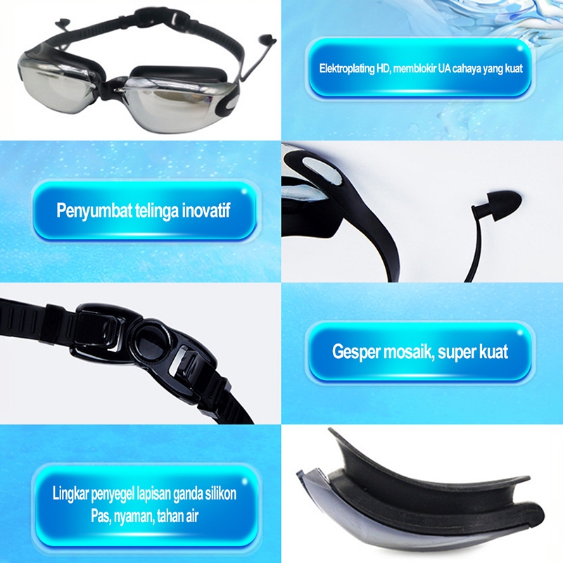 [PROMO] Kacamata Renang Remaja Anti Fog & UV Pro Tection+Ear Plug Anti,Lentur Swimming Glass Lensa Jernih