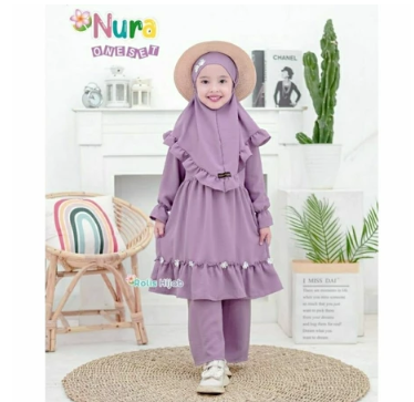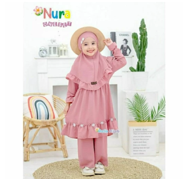 SETELAN MUSLIM anak perempuan/tunik anak nura setelan