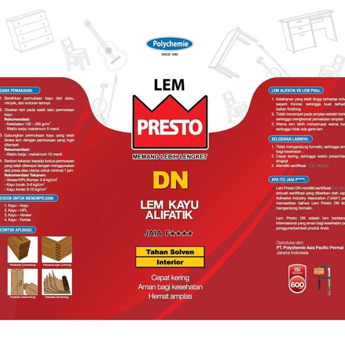 LEM PRESTO DN LEM KAYU INTERIOR BEST SELLER ALIFATIK WOOD GLUE 600 GR