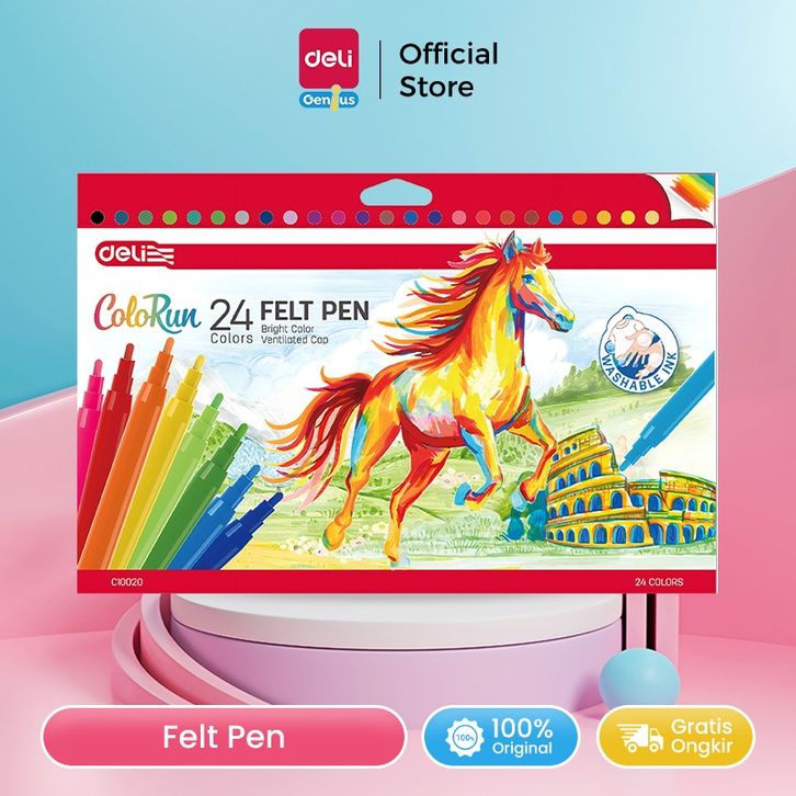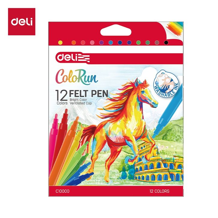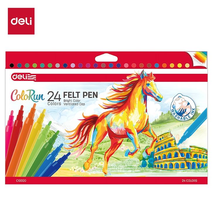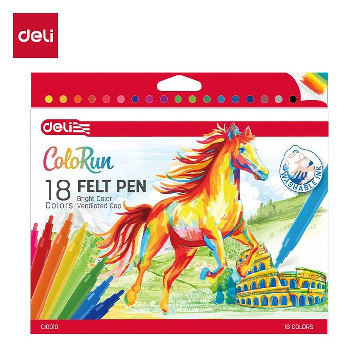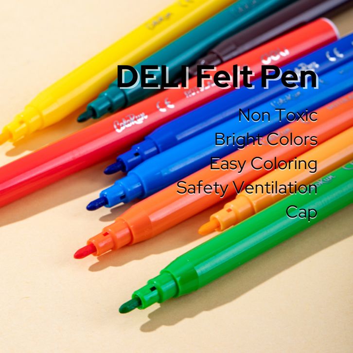 SPIDOL MEWARNAI DELI FELT PEN 12/18/24 WARNA BULLET TIP 1.0 MM NON-TOXIC MUDAH DICUCI EC100X0