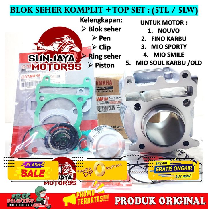ORIGINAL!!!BLOK SEHER MIO SPORTY - MIO SMILE - MIO LAMA - MIO SOUL KARBU - FINO KARBU 5LW PLUS PISTON KIT SEPAKET 5TL