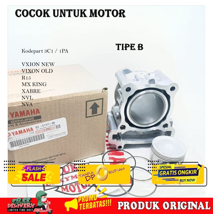 ORIGINAL!!!BLOK SEHER KOMPLIT PISTON & TOP SET YAMAHA VIXION NEW , VIXION OLD , R 15 , MX KING , XABRE KODE 1PA / 3C1