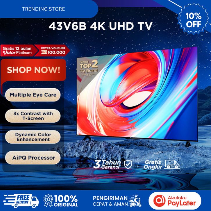 TCL smart tv 43 Inch V6B UHD T-Screen Dolby Audio HDR10 android Google TV Dynamic Color 32 40 inci garansi Resmii