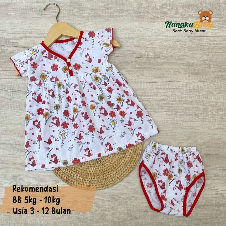 Setelan Baju Anak Setelan Baju Bayi Piyama Bayi Dress Motif Red Rose Usia 3-12 Bulan Setelan Baju Bayi Best Seller